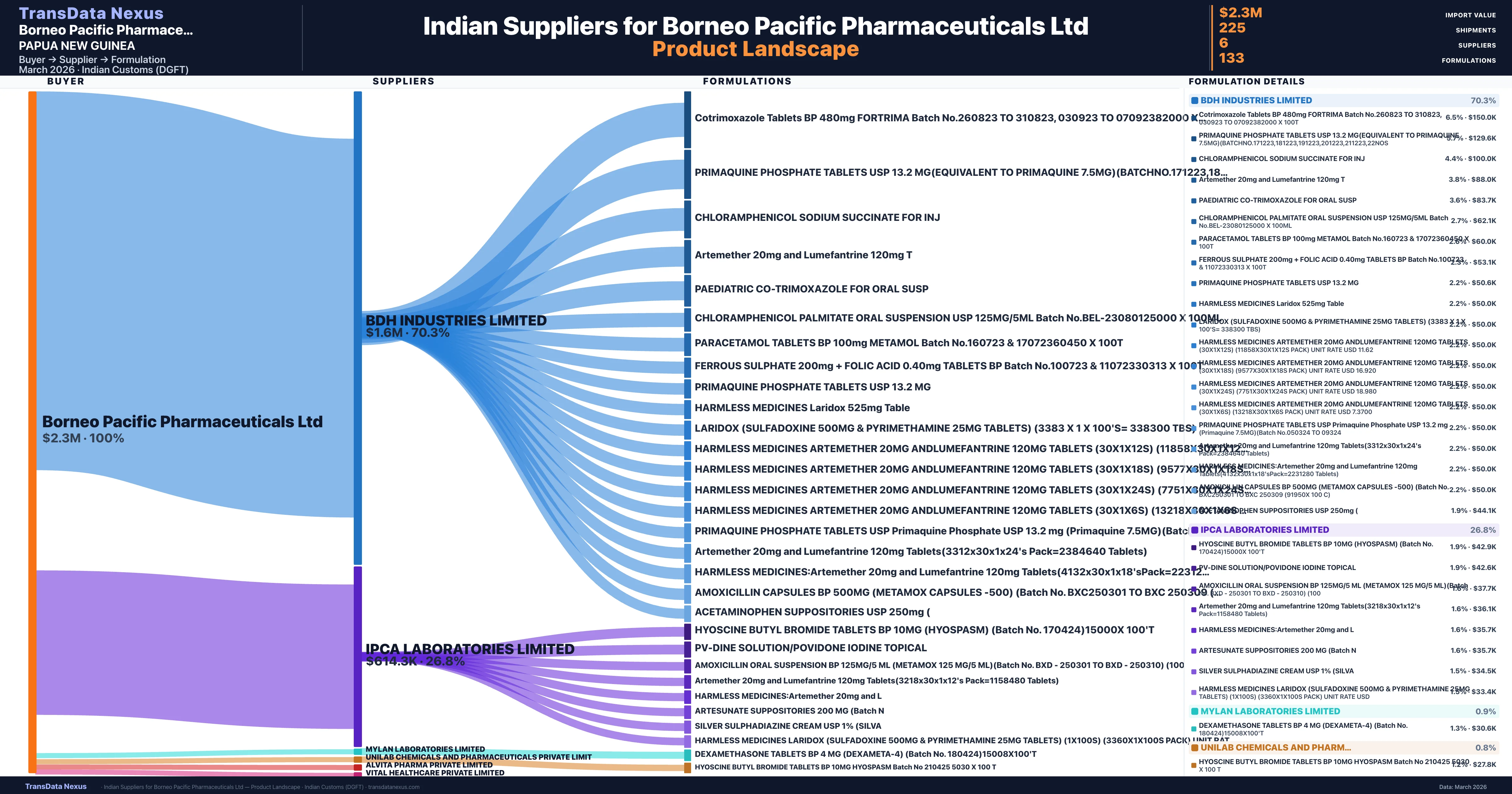 - 5.Supplier Verification: Borneo Pacific Pharmaceuticals Ltd sources from 6 verified Indian suppliers across 133 formulations, confirmed from customs records.