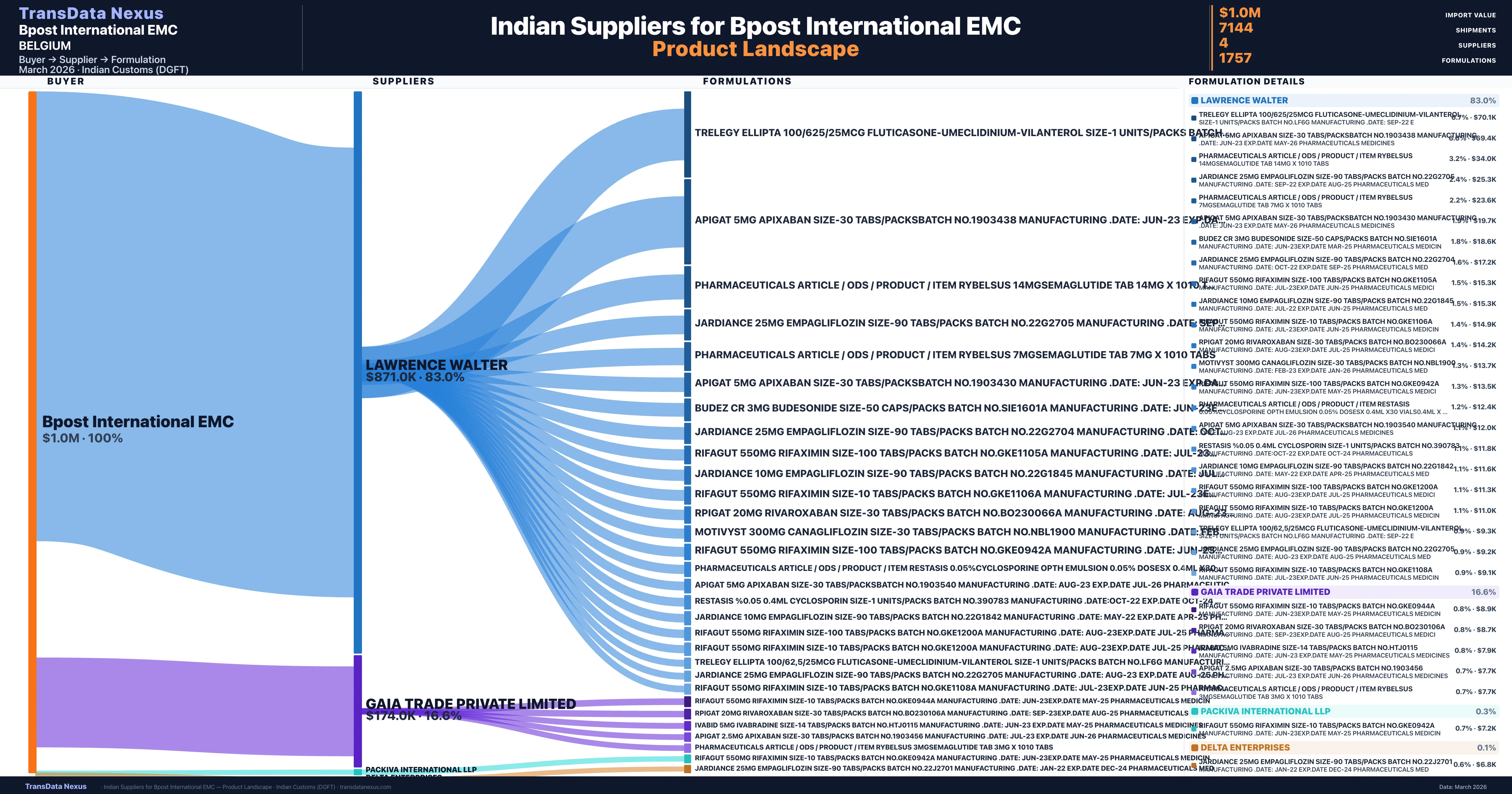 - 5.Supplier Verification: Bpost International EMC sources from 4 verified Indian suppliers across 1,757 formulations, confirmed from customs records.