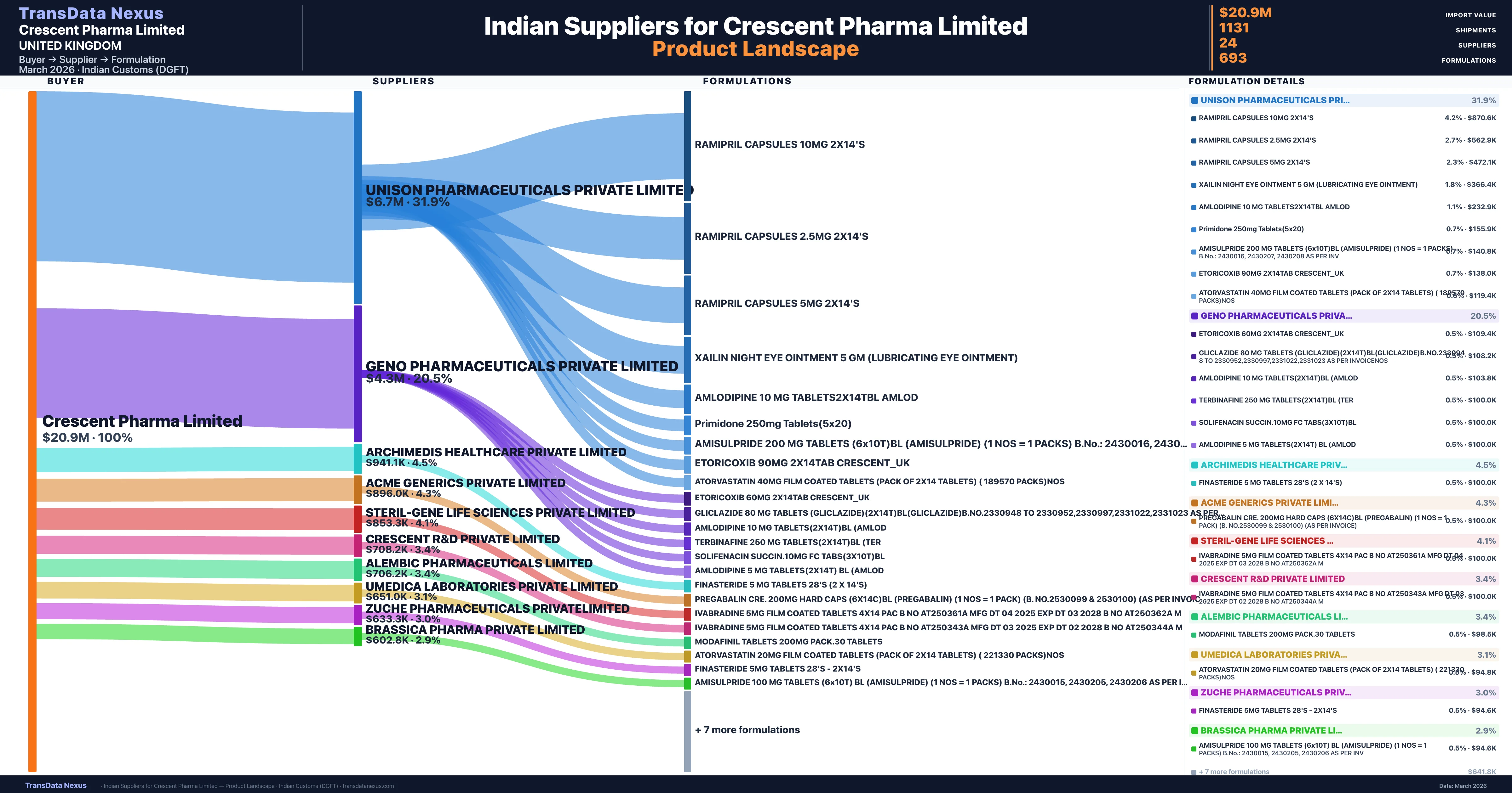 Crescent Pharma Limited — Import Portfolio & Supplier Network