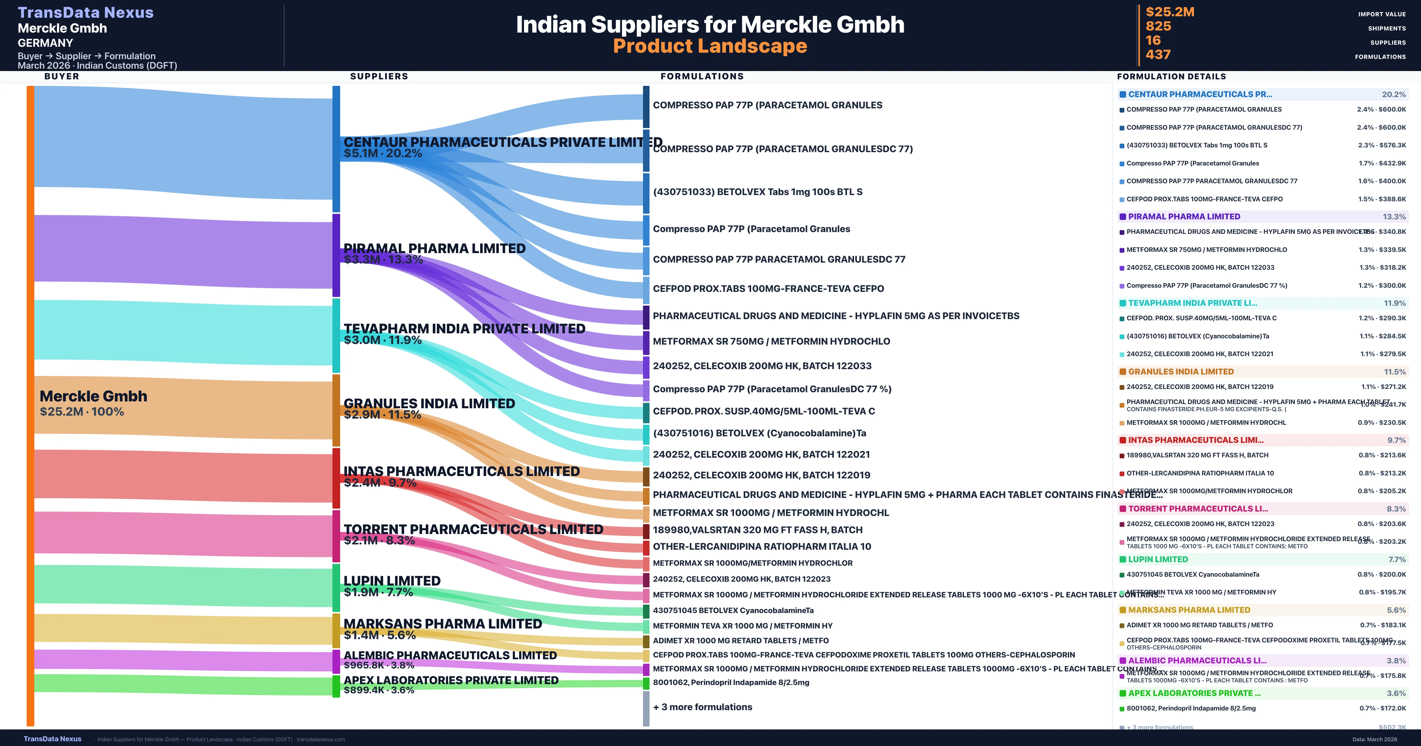 - 5.Supplier Verification: Merckle Gmbh sources from 16 verified Indian suppliers across 437 formulations, confirmed from customs records.