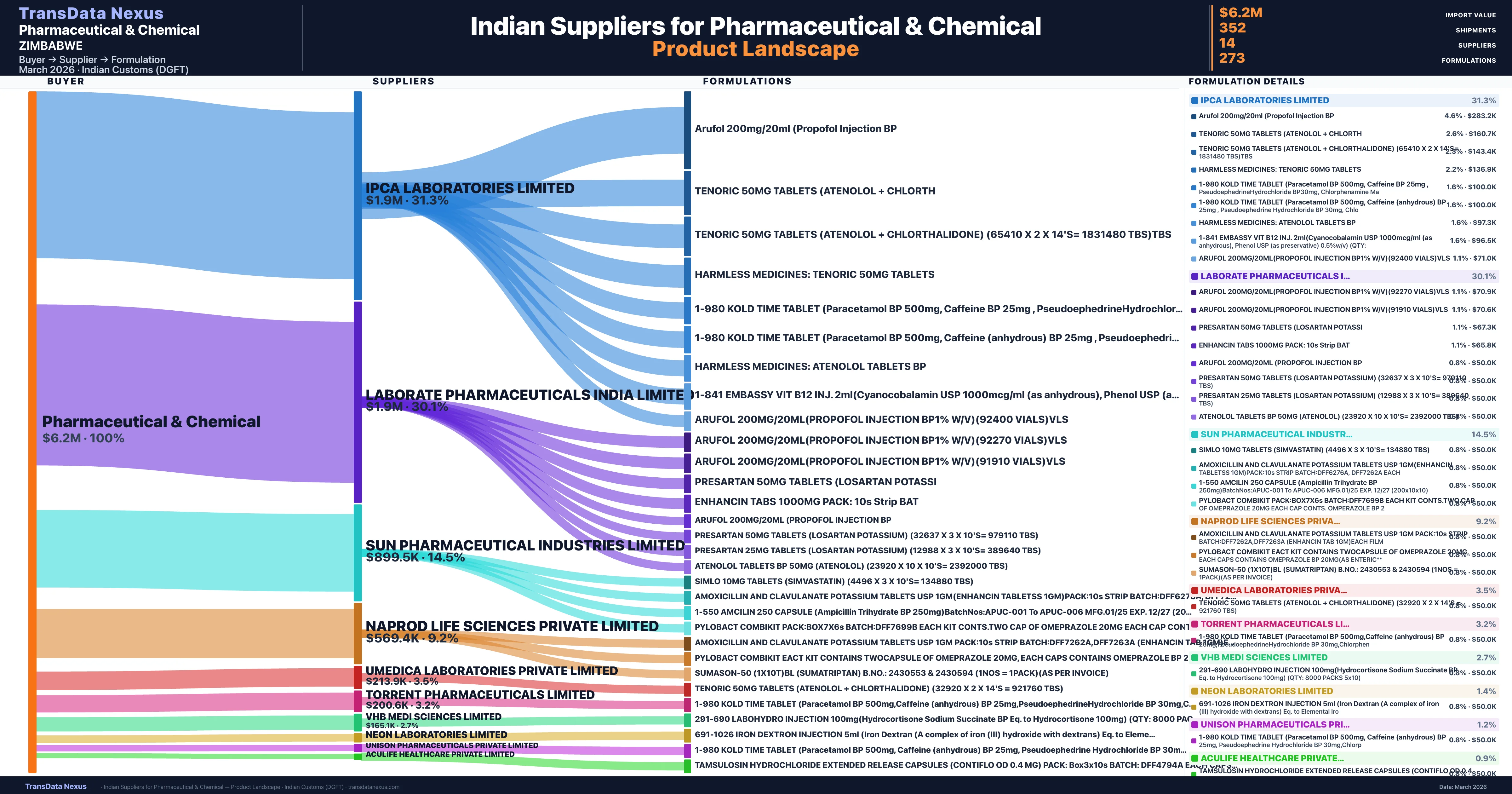 - 5.Supplier Verification: Pharmaceutical & Chemical sources from 14 verified Indian suppliers across 273 formulations, confirmed from customs records.