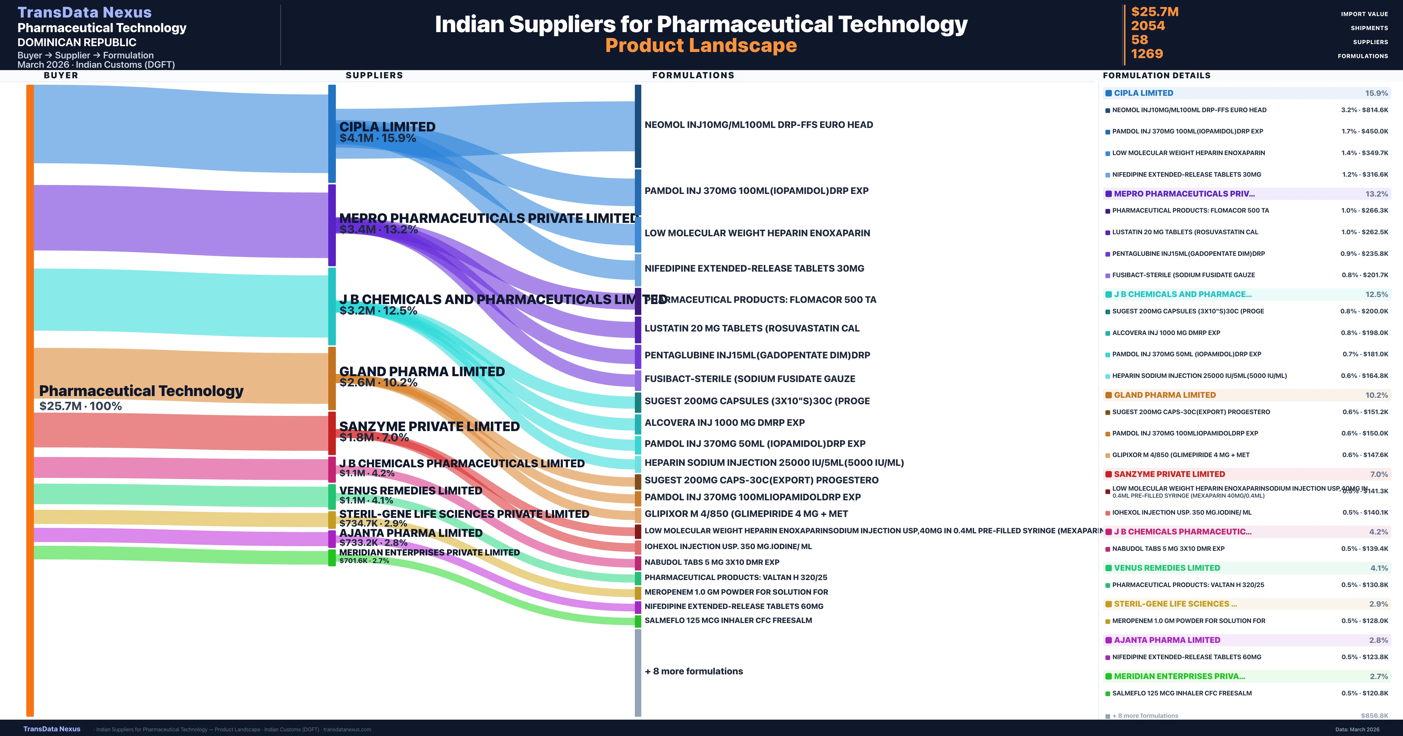 - 5.Supplier Verification: Pharmaceutical Technology sources from 58 verified Indian suppliers across 1,269 formulations, confirmed from customs records.
