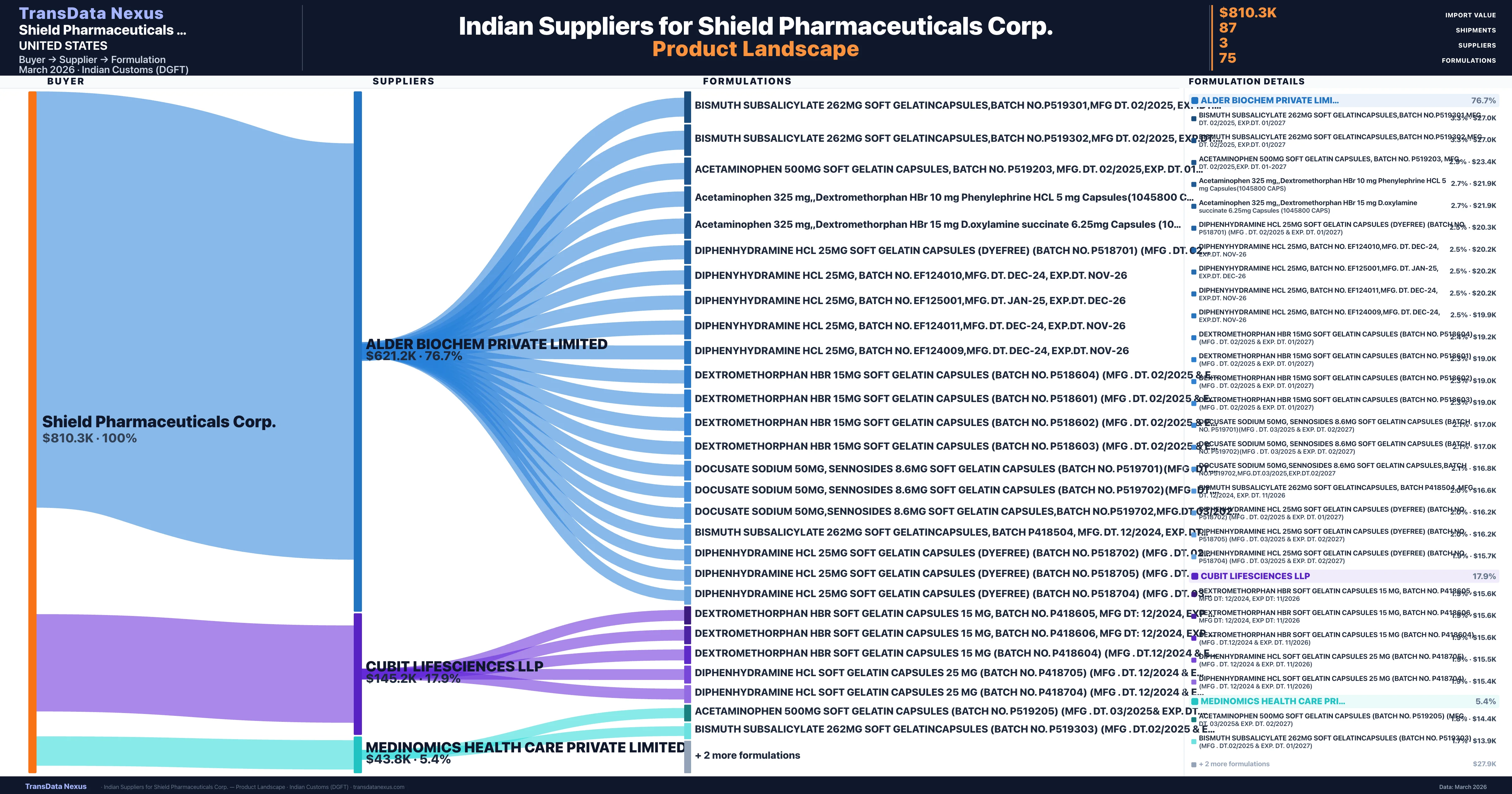 Shield Pharmaceuticals Corp. β Import Portfolio & Supplier Network