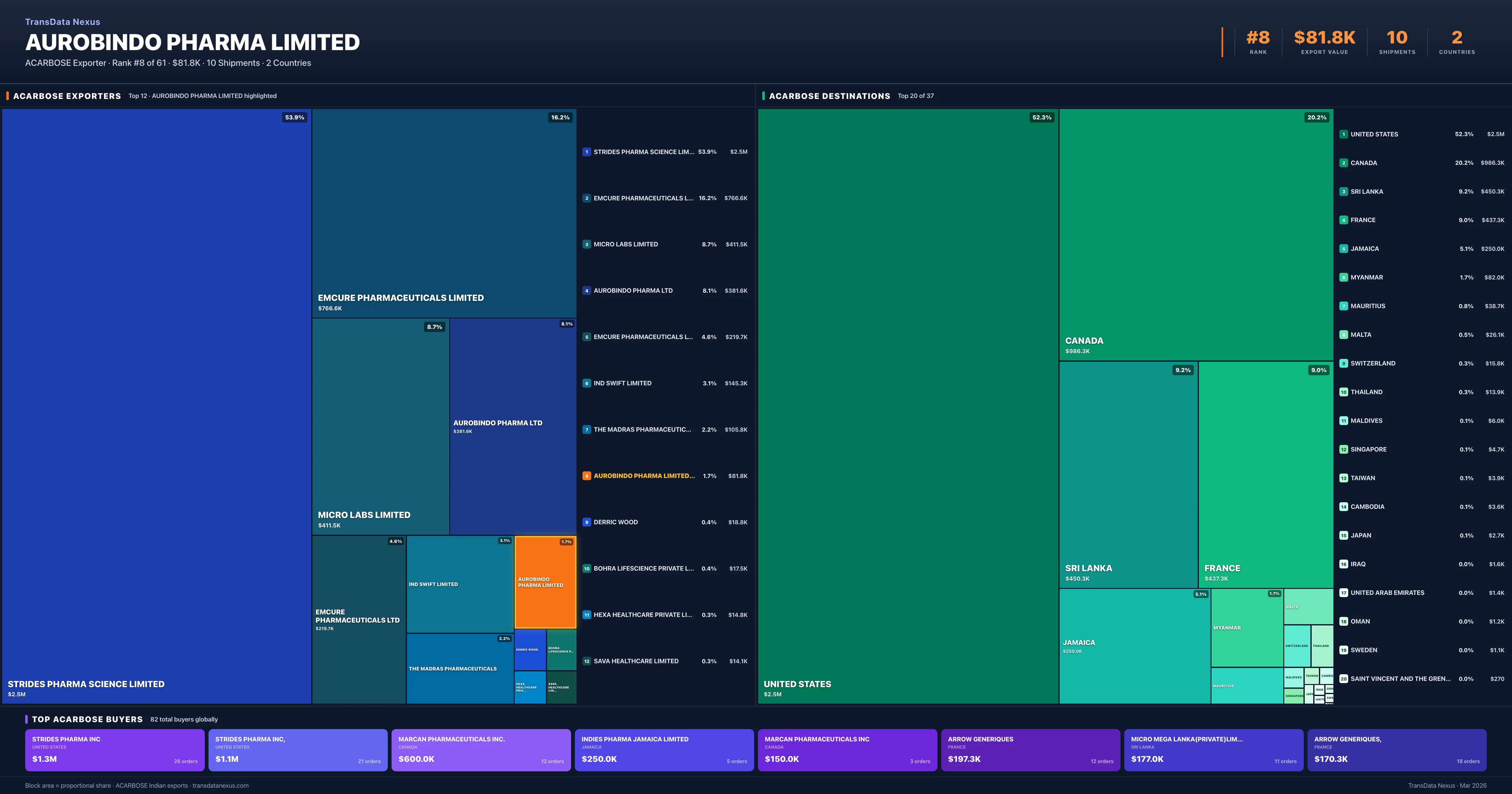 Aurobindo Pharma Limited — Acarbose Export Profile: Buyers & Destinations
