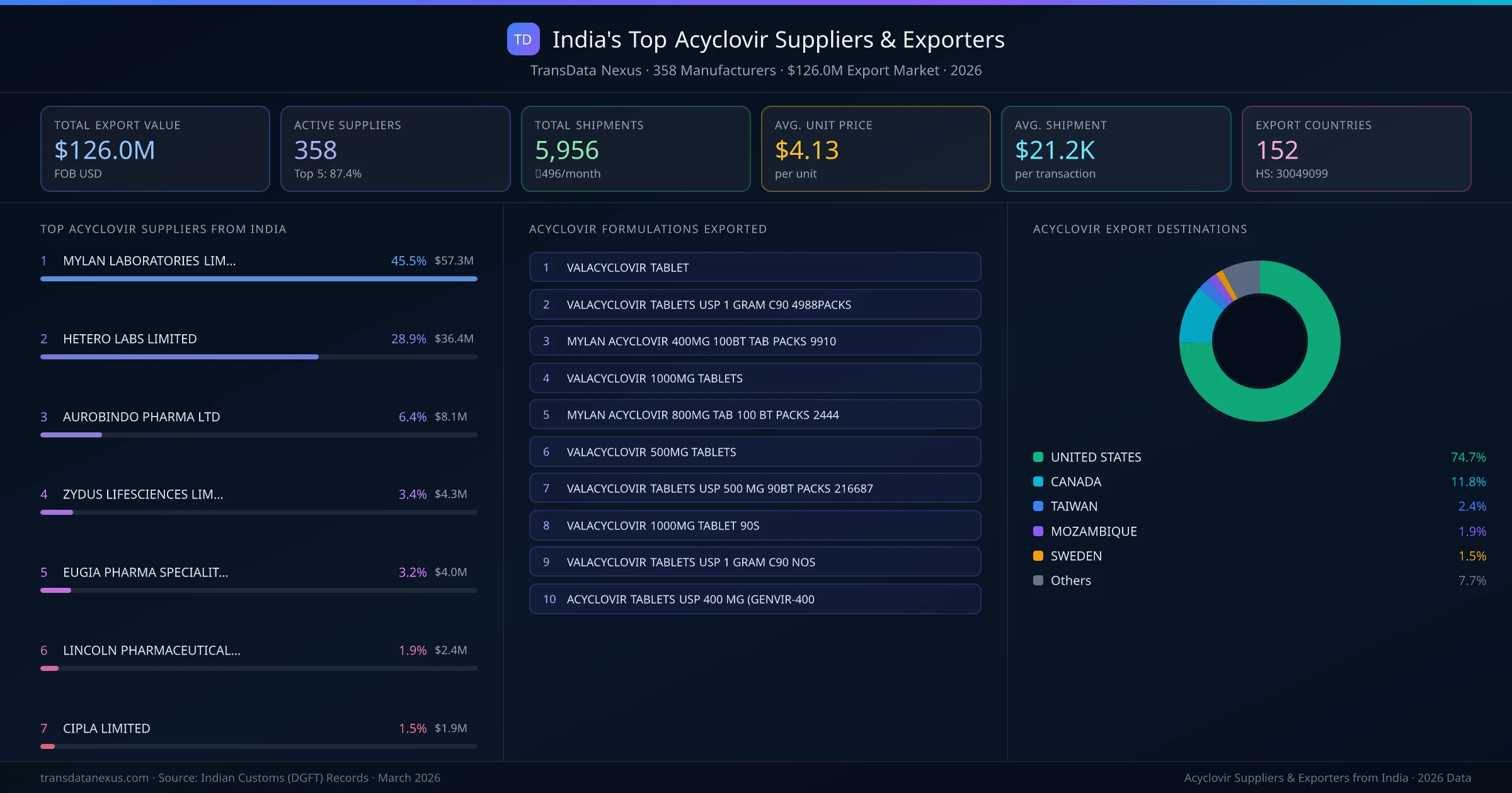 Who Exports Acyclovir from India โ 358 Suppliers Behind a $126.0M Market