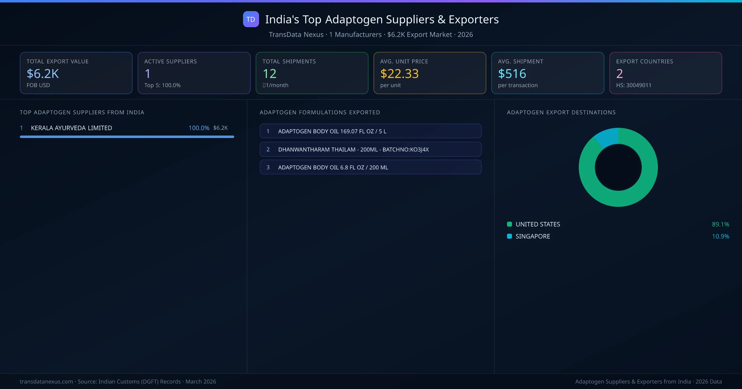 Who Exports Adaptogen from India โ 1 Suppliers Behind a $6.2K Market