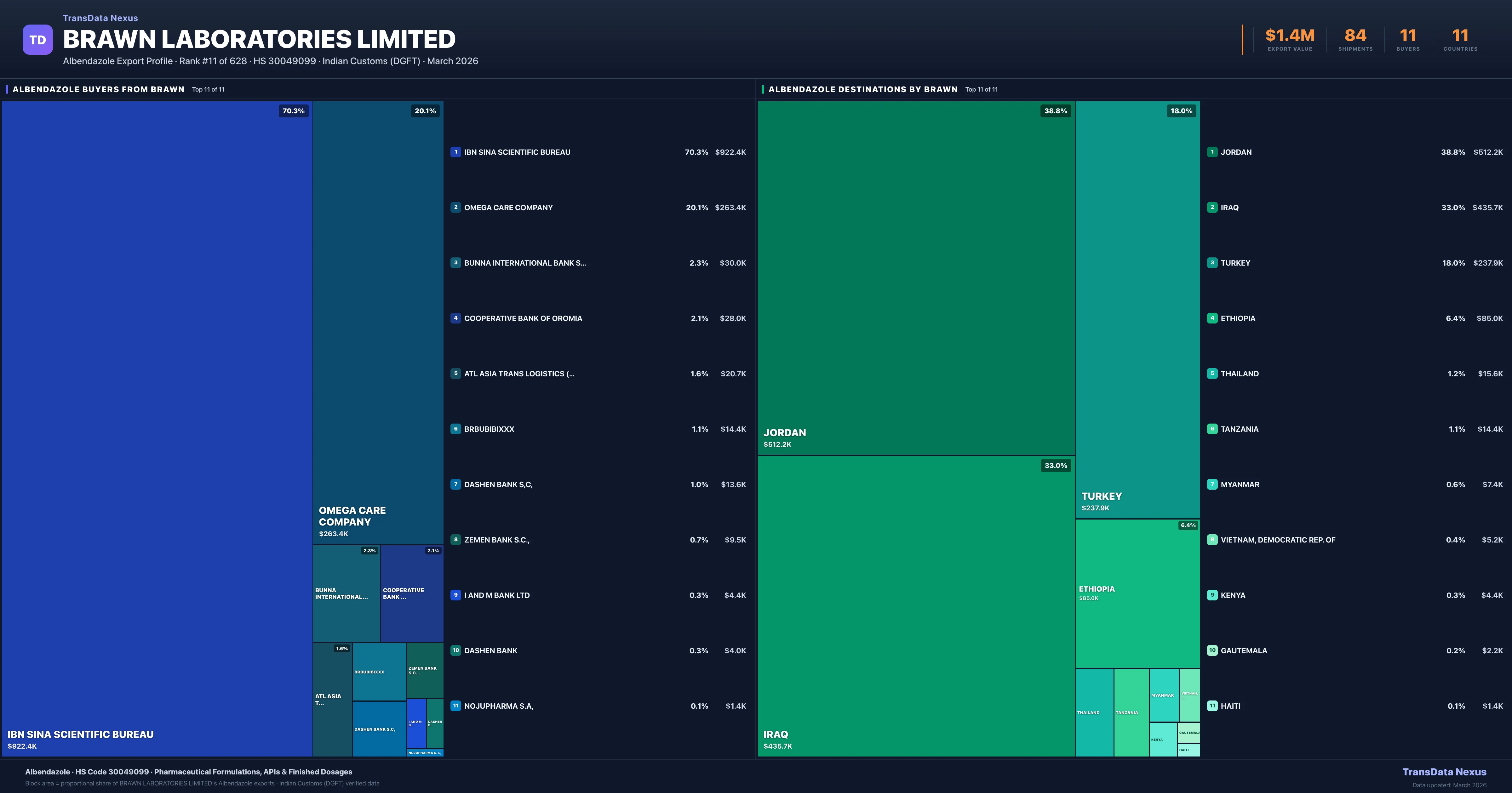 Brawn Laboratories Limited — Albendazole Export Profile: Buyers & Destinations