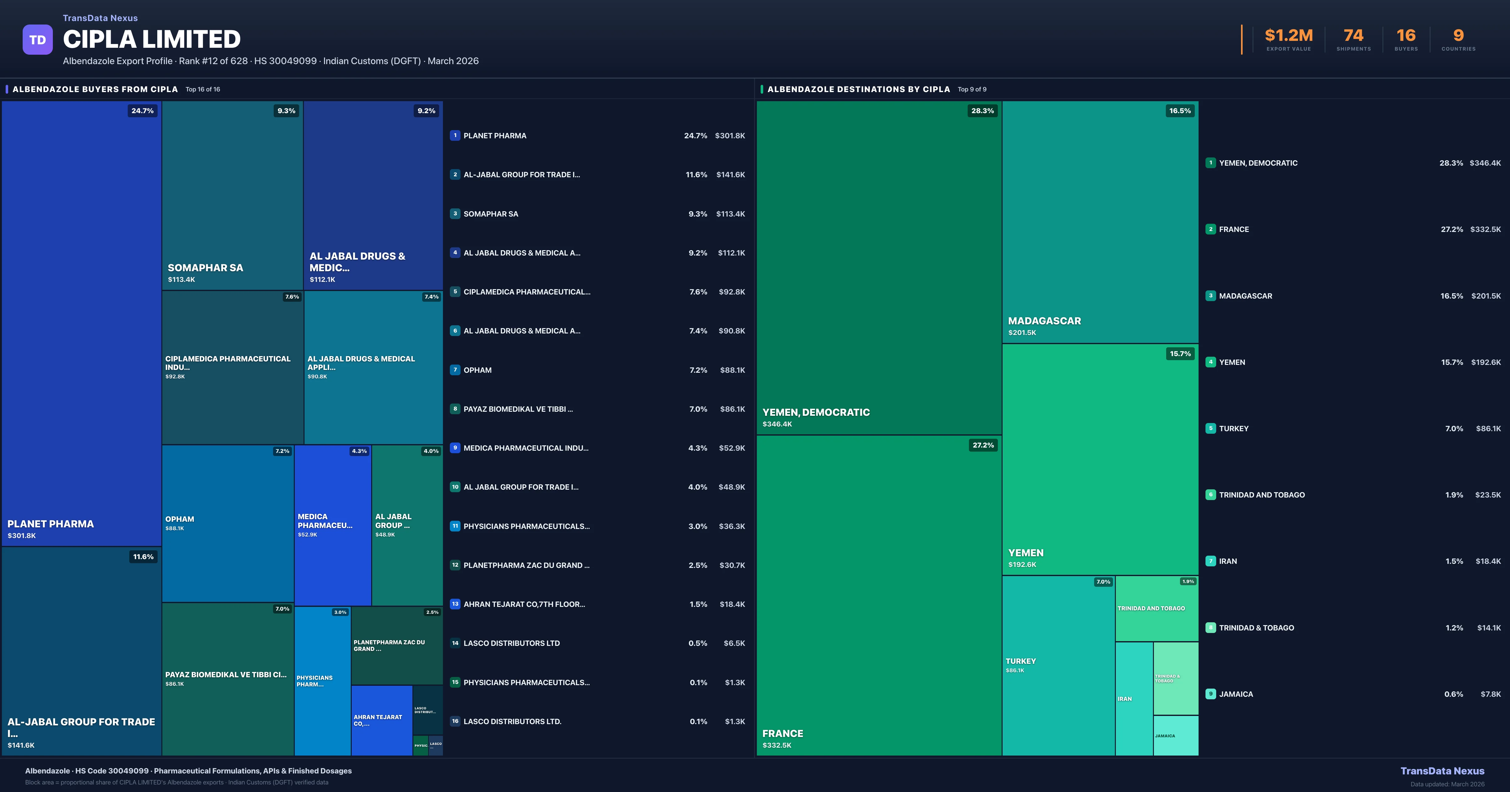 Cipla Limited — Albendazole Export Profile: Buyers & Destinations