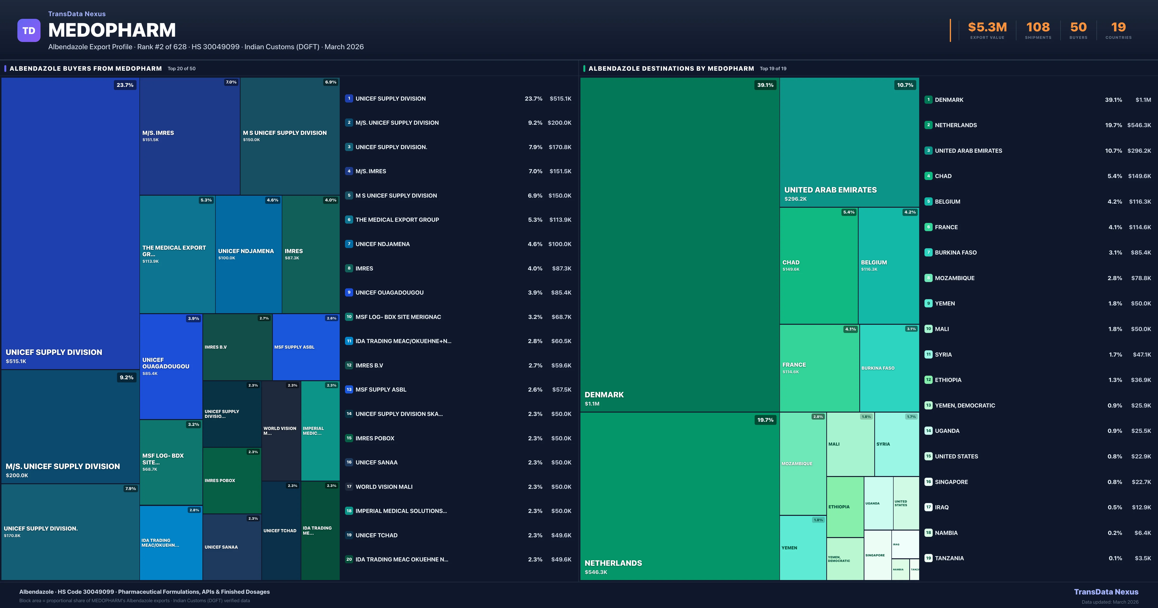 Medopharm — Albendazole Export Profile: Buyers & Destinations