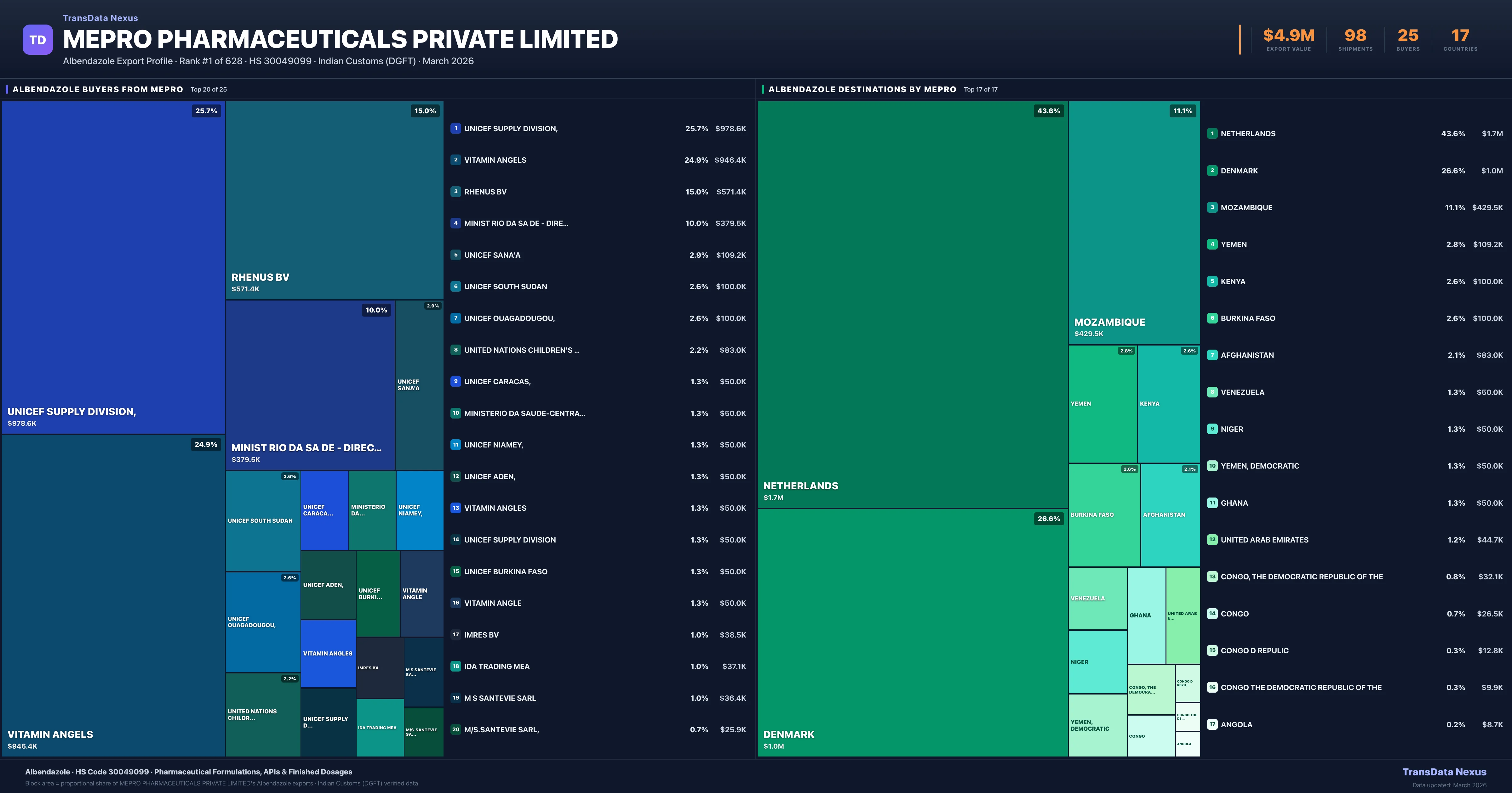 Mepro Pharmaceuticals Private Limited — Albendazole Export Profile: Buyers & Destinations