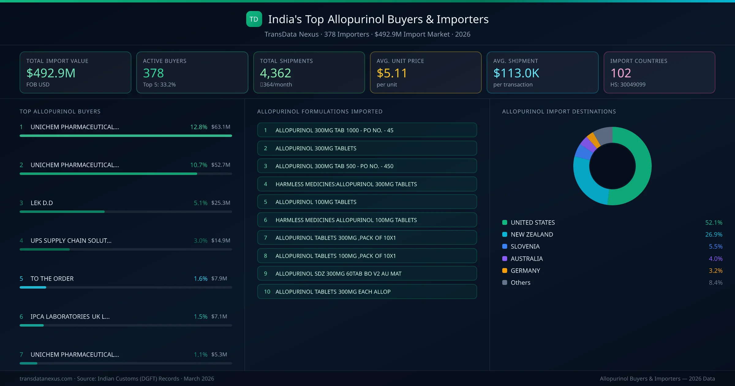 Who Buys Allopurinol from India — 378 Importers Behind a $492.9M Market