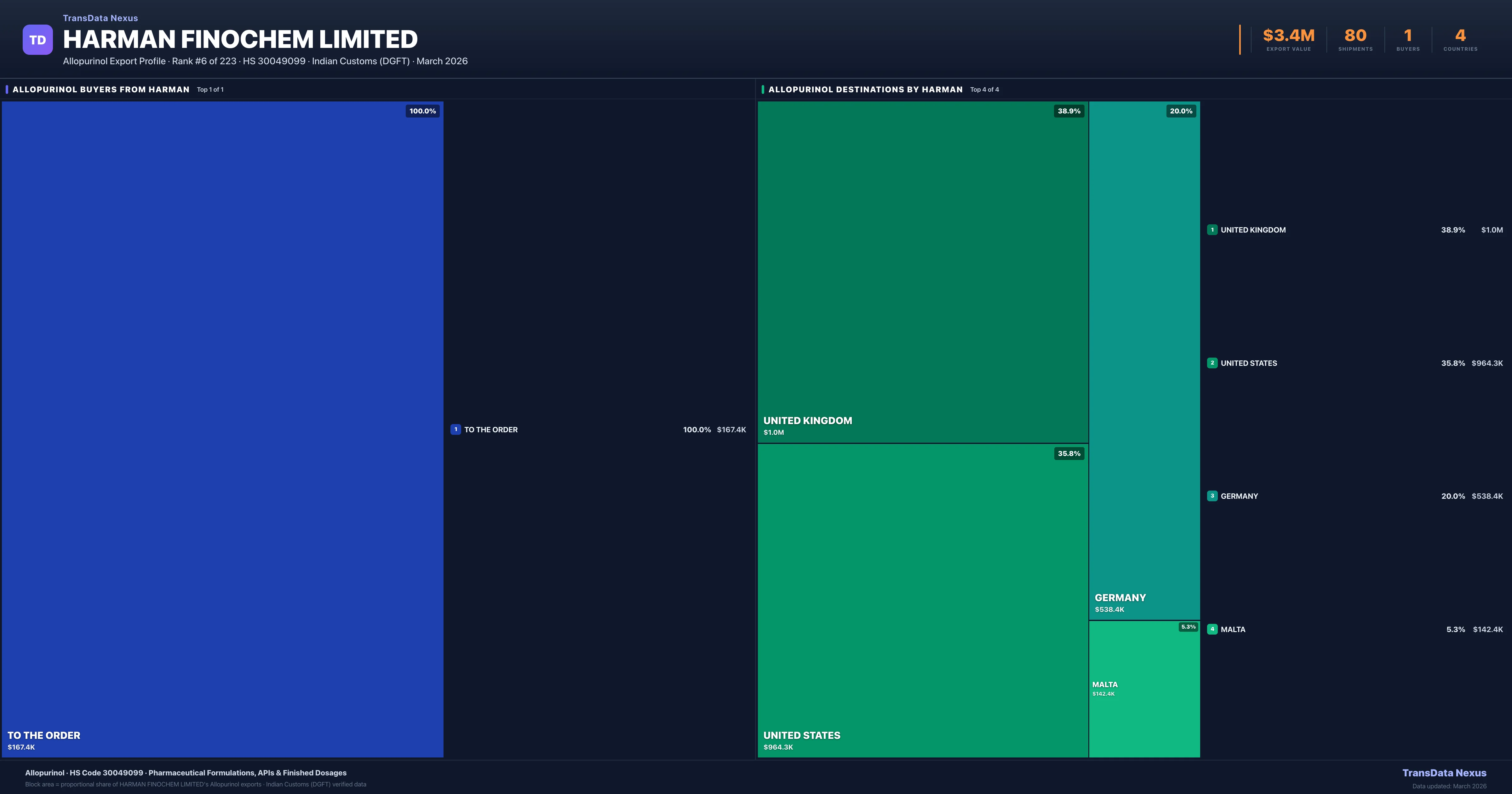 Harman Finochem Limited — Allopurinol Export Profile: Buyers & Destinations