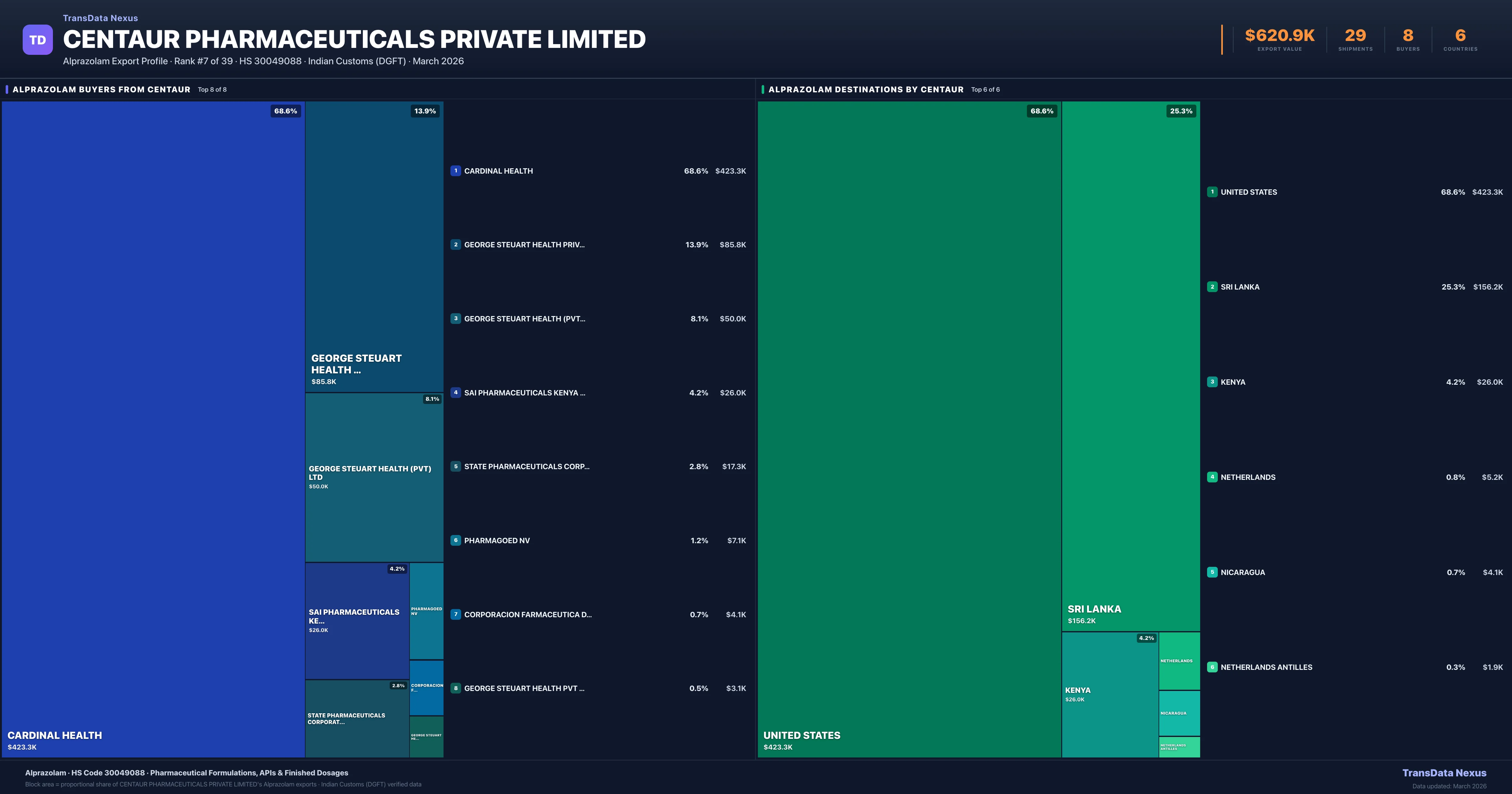 Centaur Pharmaceuticals Private Limited — Alprazolam Export Profile: Buyers & Destinations