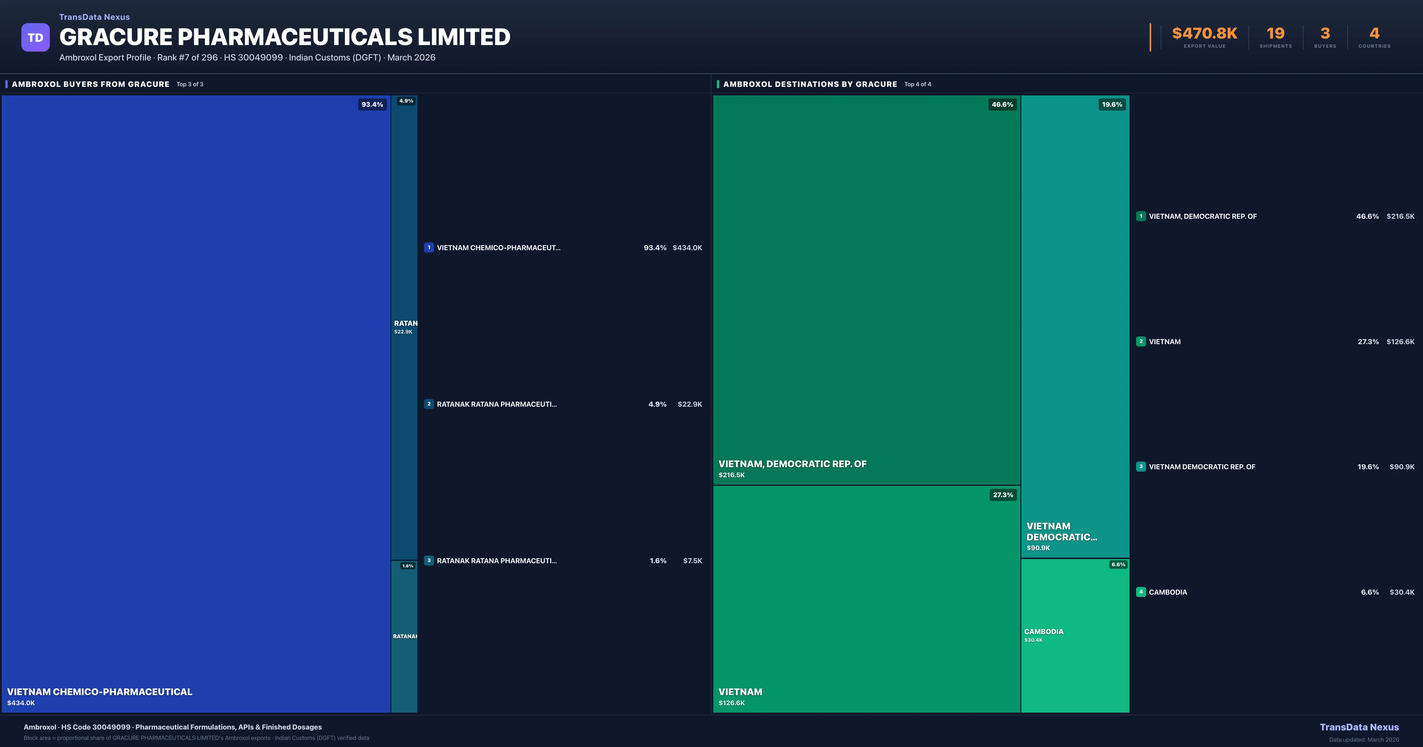 Gracure Pharmaceuticals Limited — Ambroxol Export Profile: Buyers & Destinations