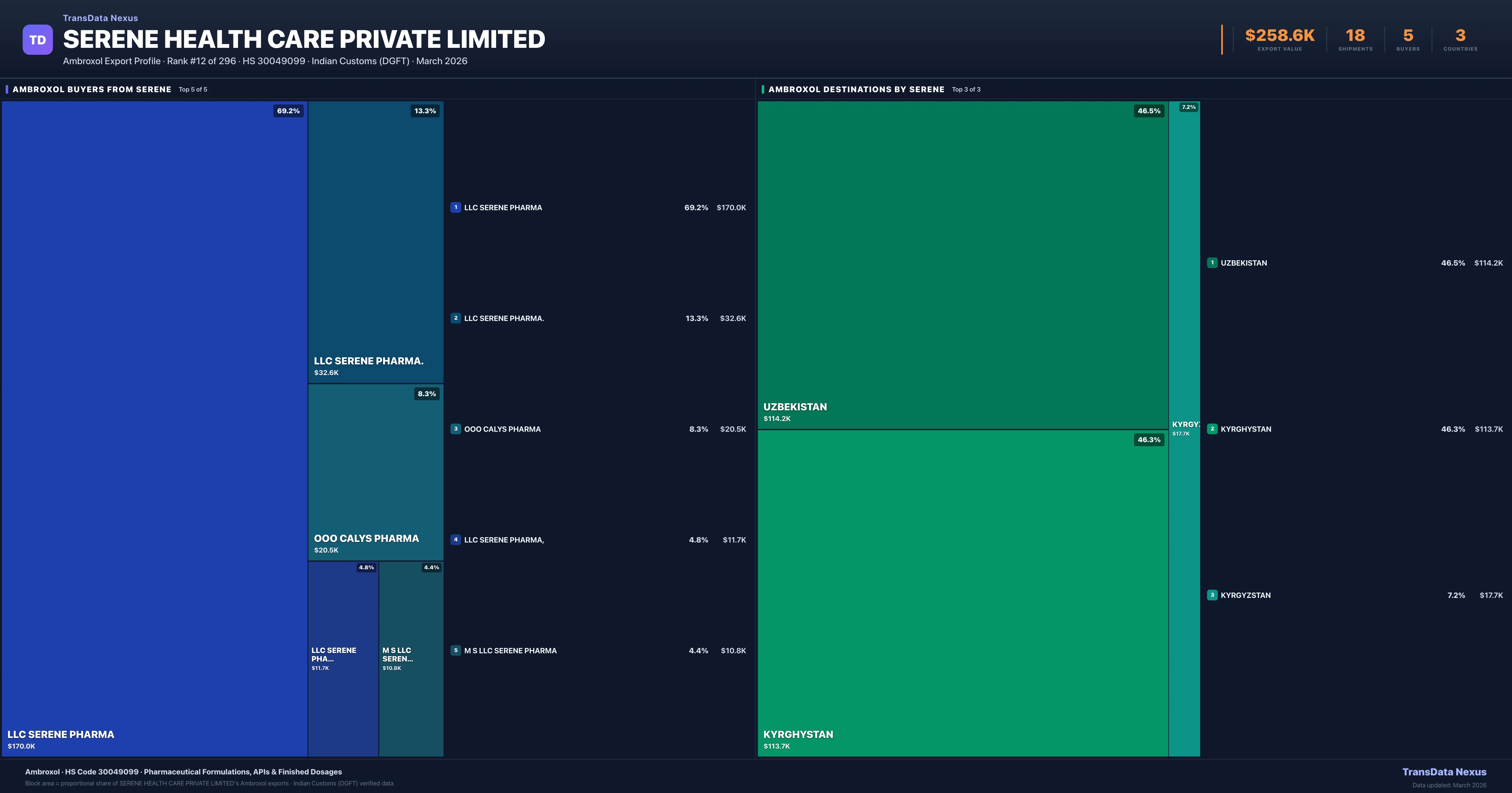 Serene Health Care Private Limited — Ambroxol Export Profile: Buyers & Destinations