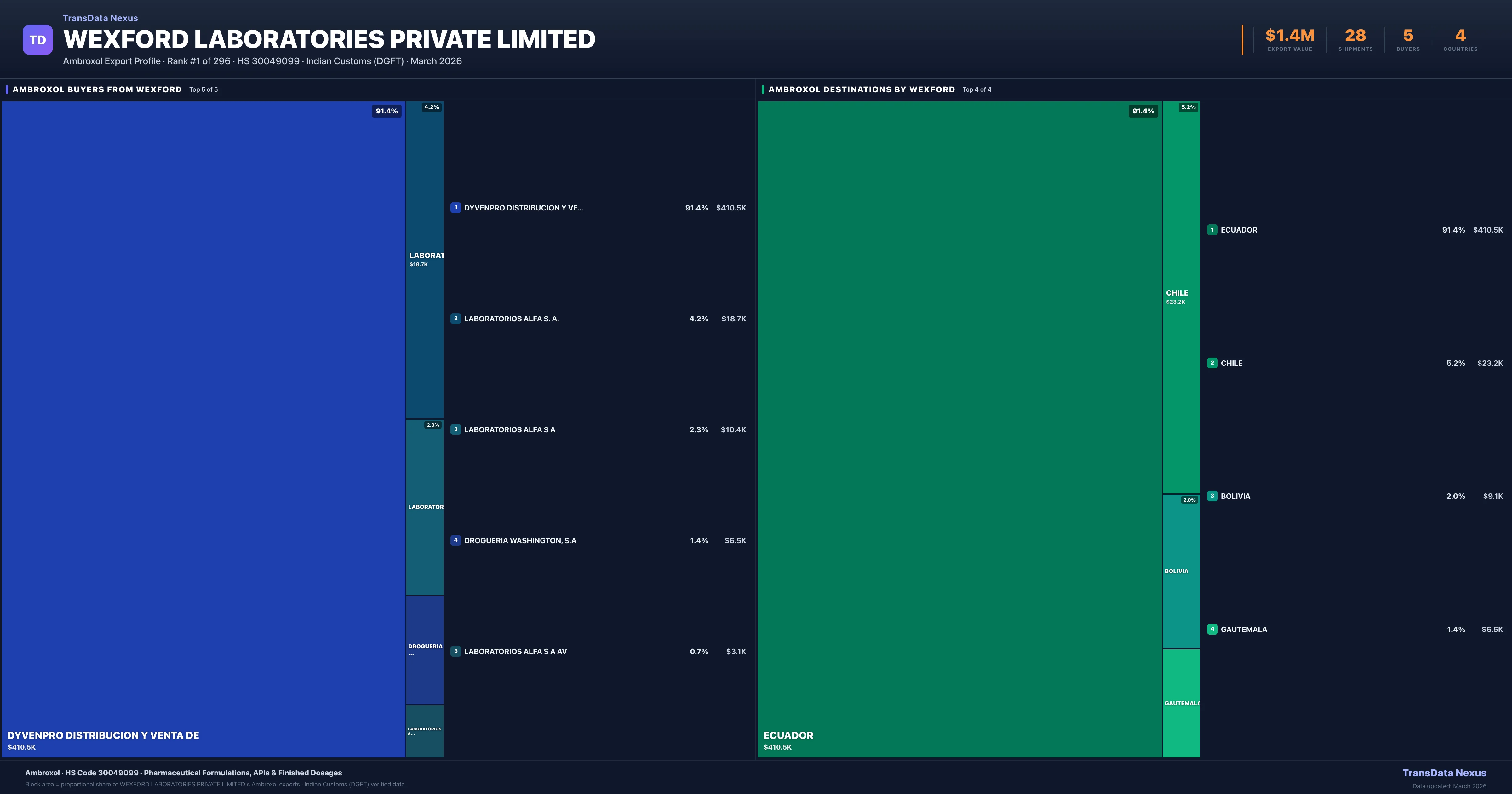 Wexford Laboratories Private Limited — Ambroxol Export Profile: Buyers & Destinations