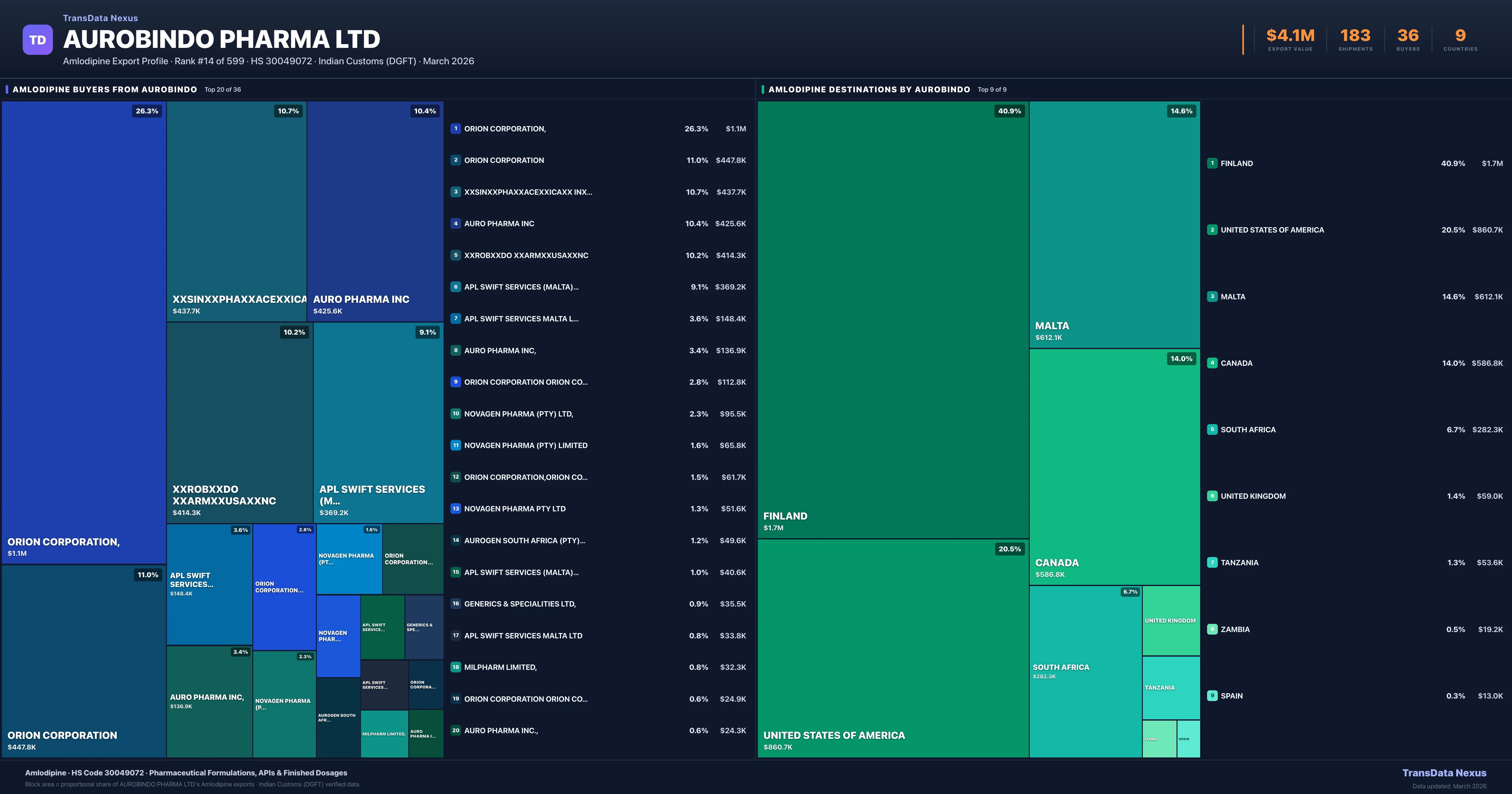 Aurobindo Pharma Ltd — Amlodipine Export Profile: Buyers & Destinations