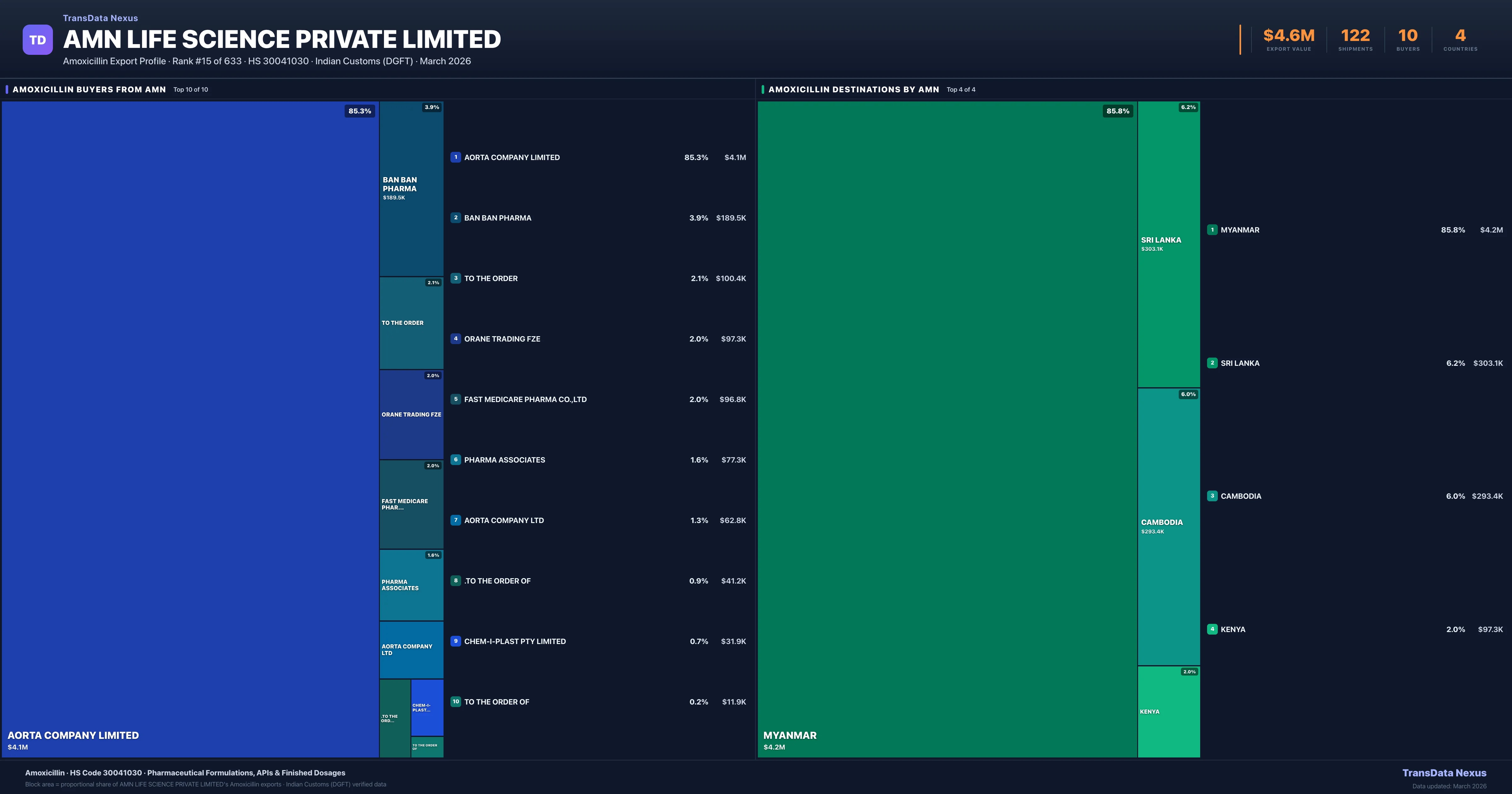AMN Life Science Private Limited β Amoxicillin Export Profile: Buyers & Destinations