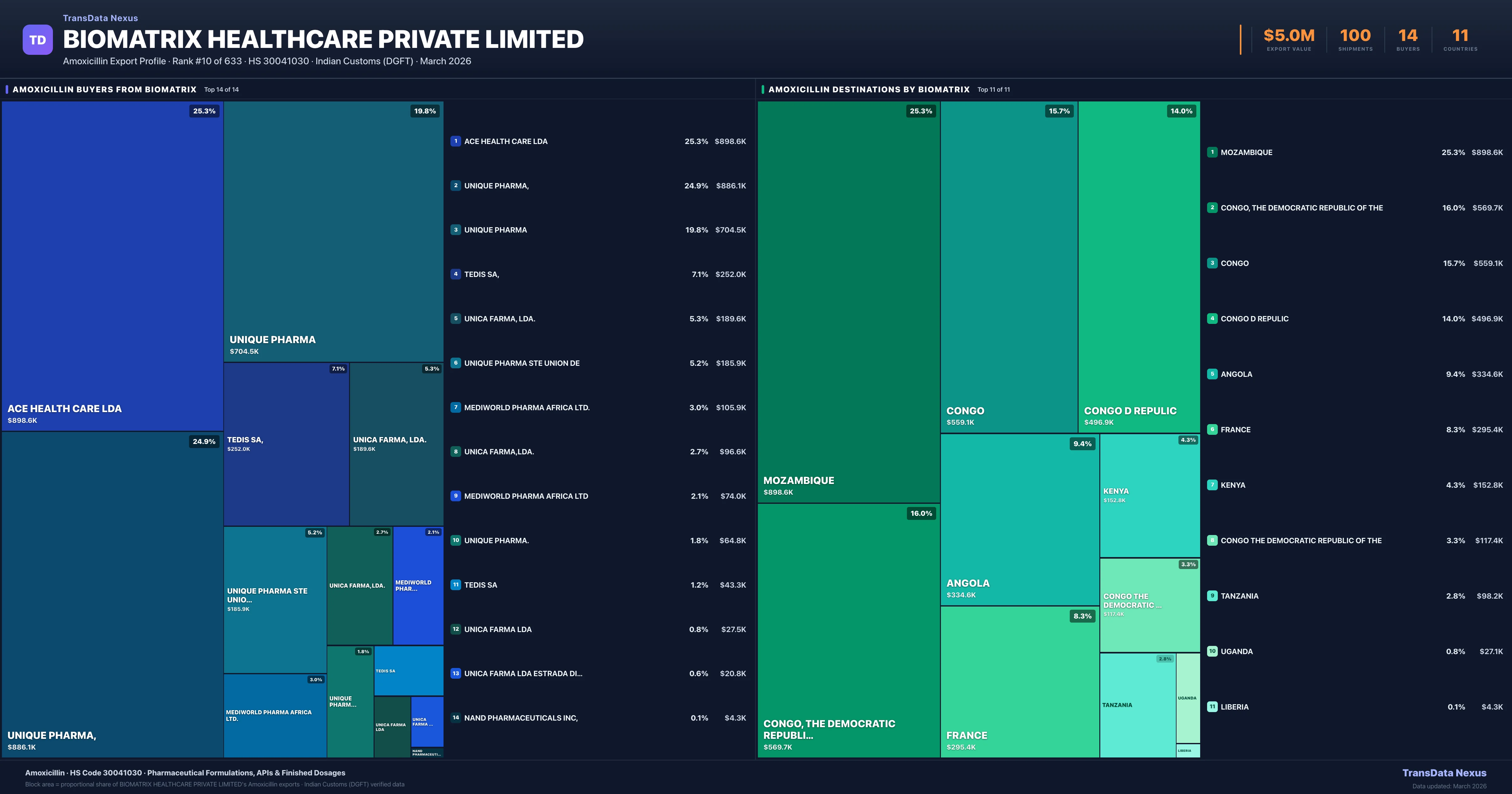 Biomatrix Healthcare Private Limited — Amoxicillin Export Profile: Buyers & Destinations