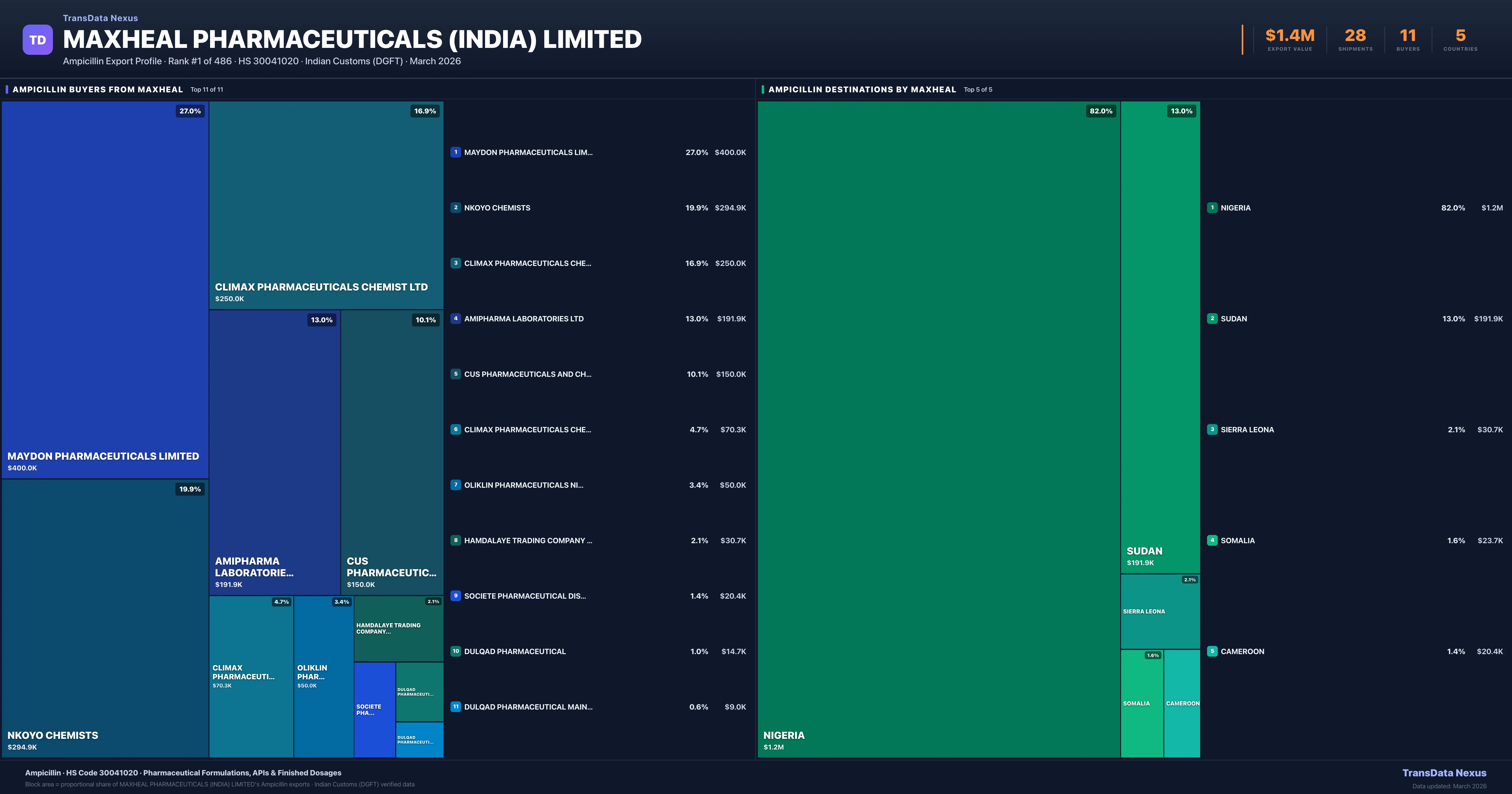Maxheal Pharmaceuticals (india) Limited — Ampicillin Export Profile: Buyers & Destinations