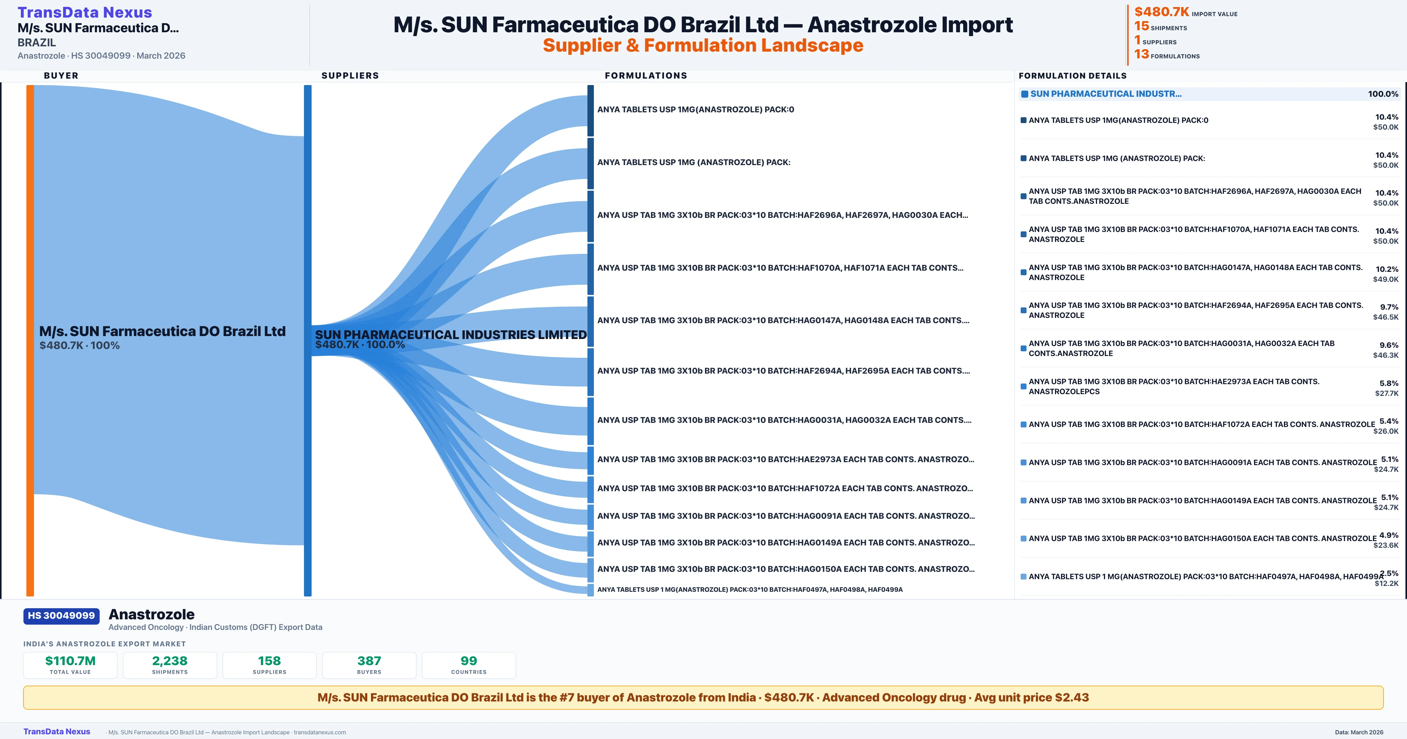 M/S. SUN FARMACEUTICA DO BRAZIL LTD β Anastrozole Import Profile: Suppliers, Formulations & Sources