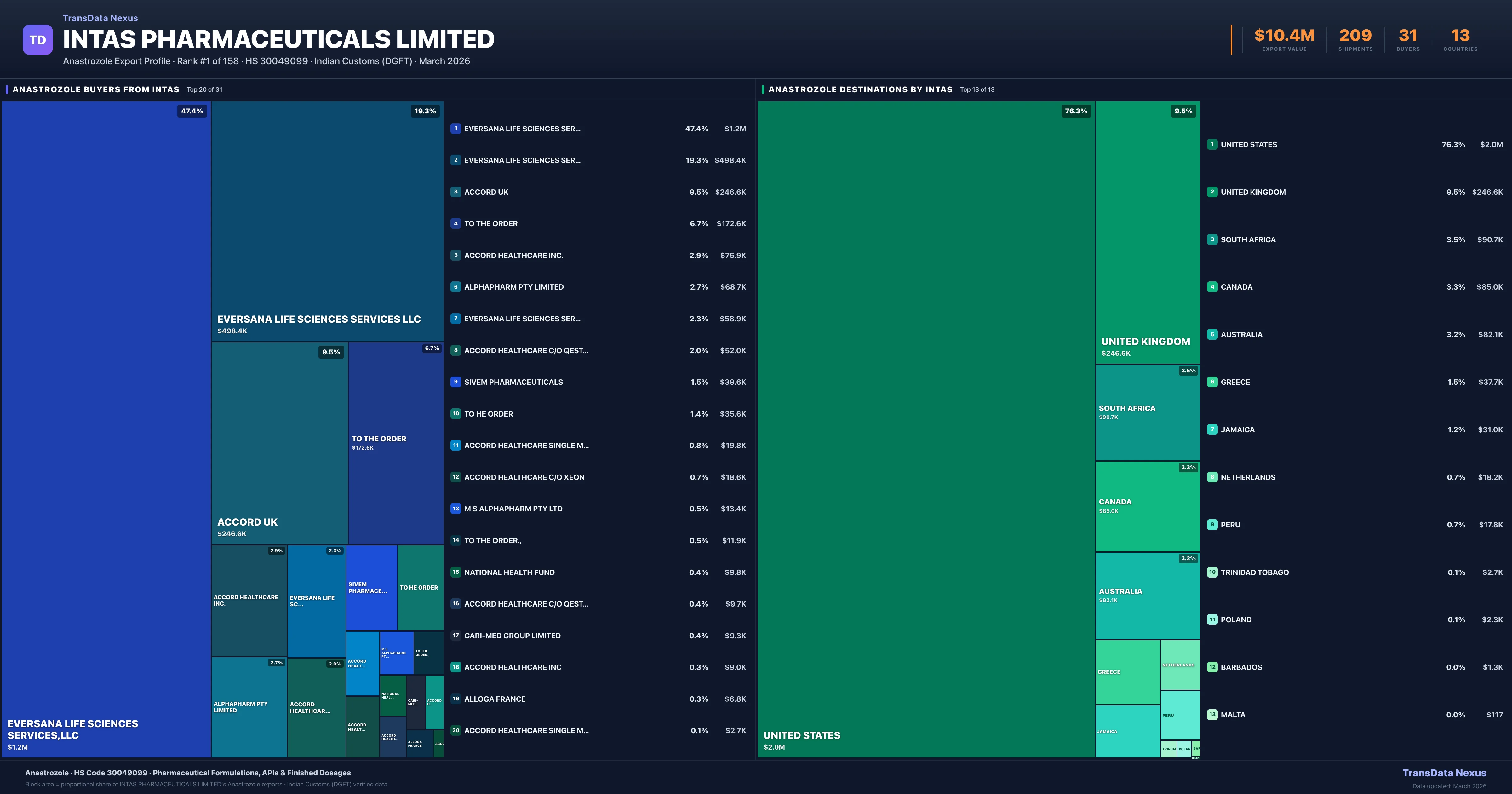 Intas Pharmaceuticals Limited — Anastrozole Export Profile: Buyers & Destinations