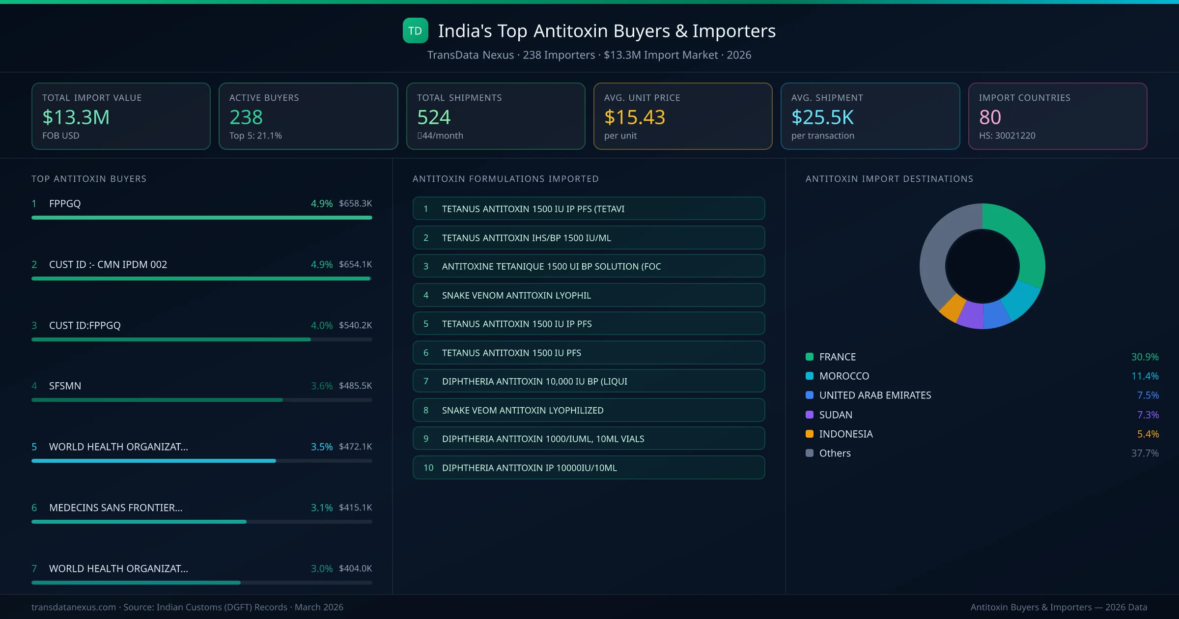 Who Buys Antitoxin from India — 238 Importers Behind a $13.3M Market