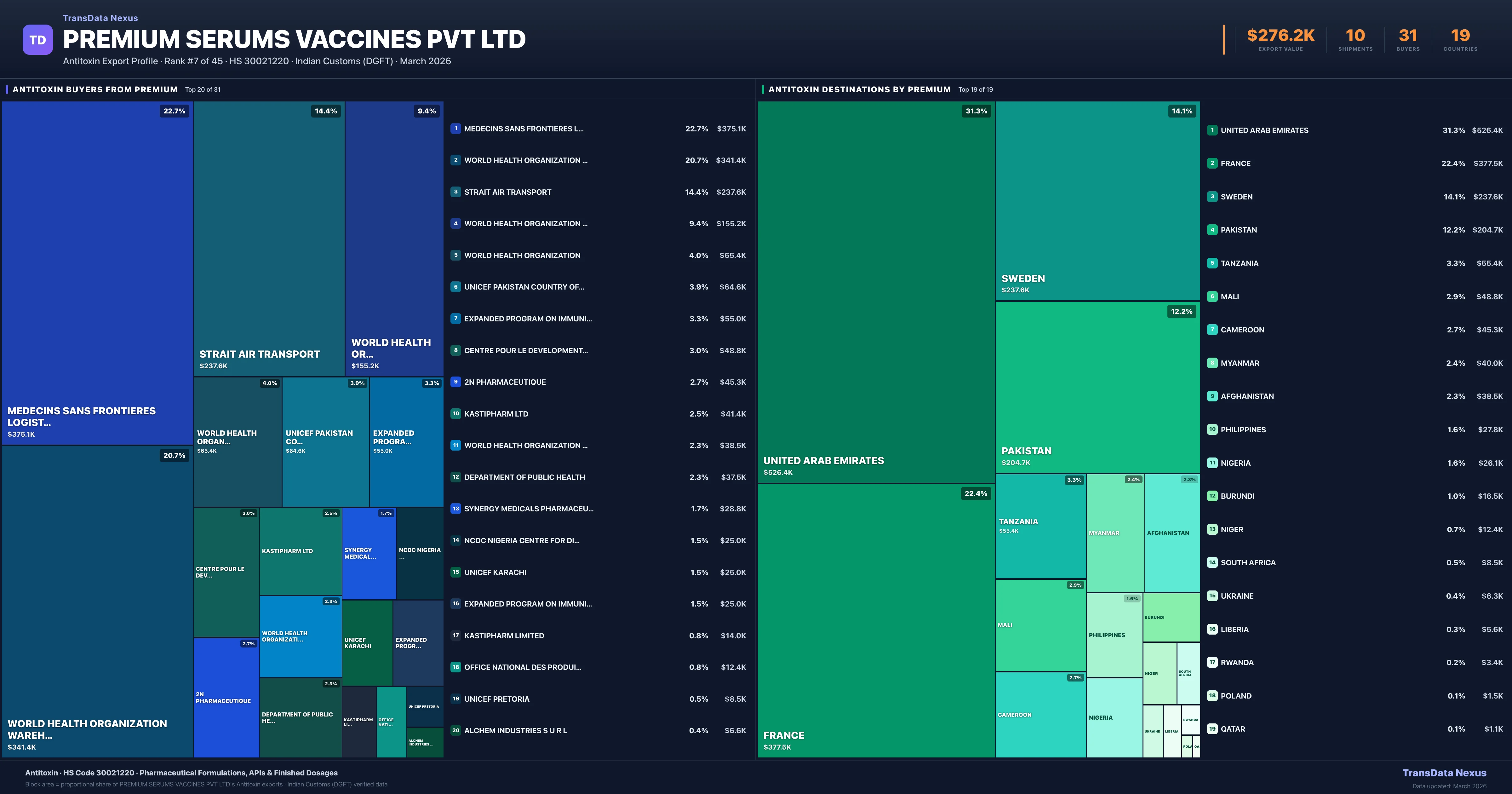 Premium Serums Vaccines Pvt Ltd — Antitoxin Export Profile: Buyers & Destinations