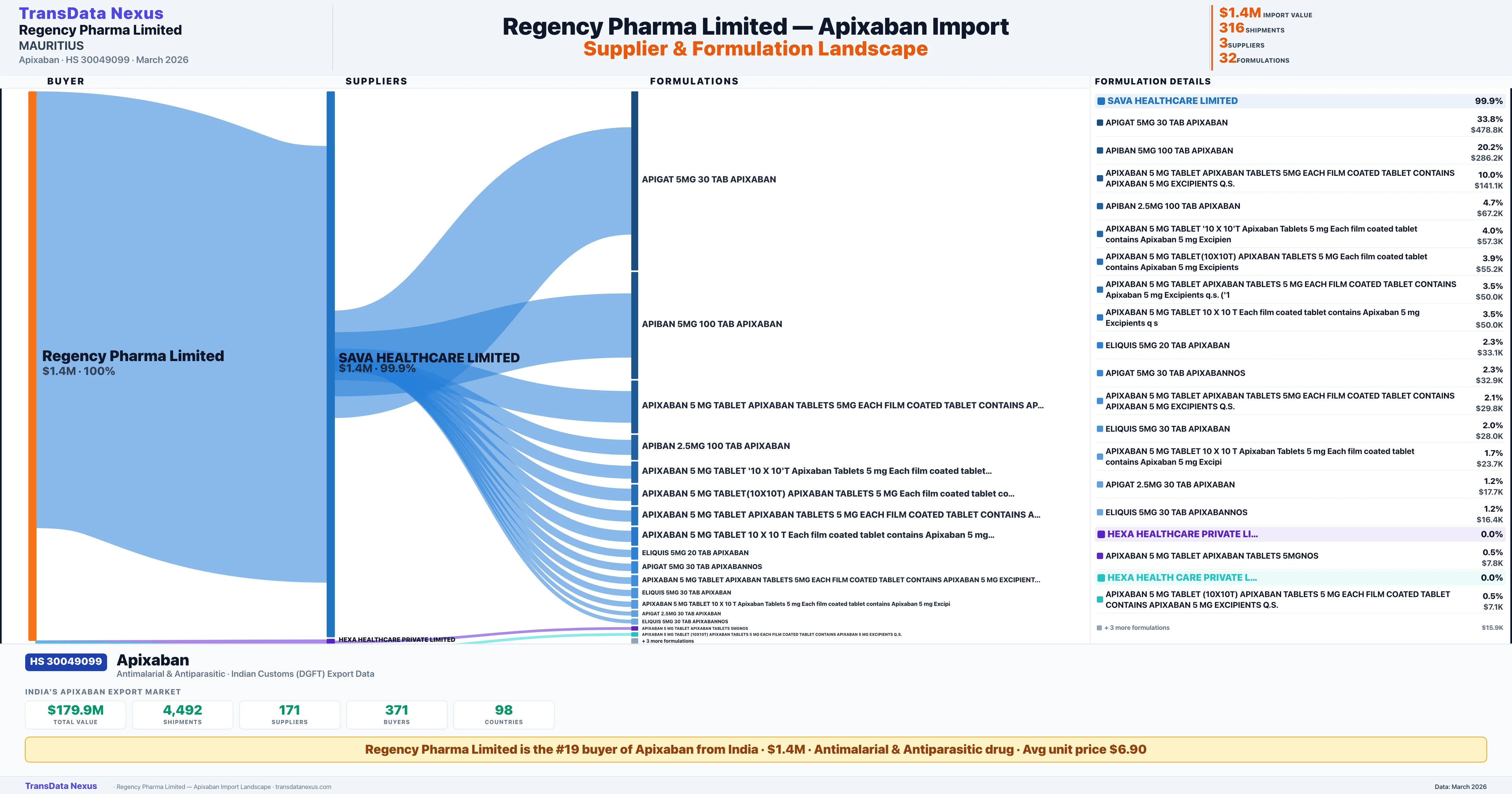 REGENCY PHARMA LIMITED — Apixaban Import Profile: Suppliers, Formulations & Sources