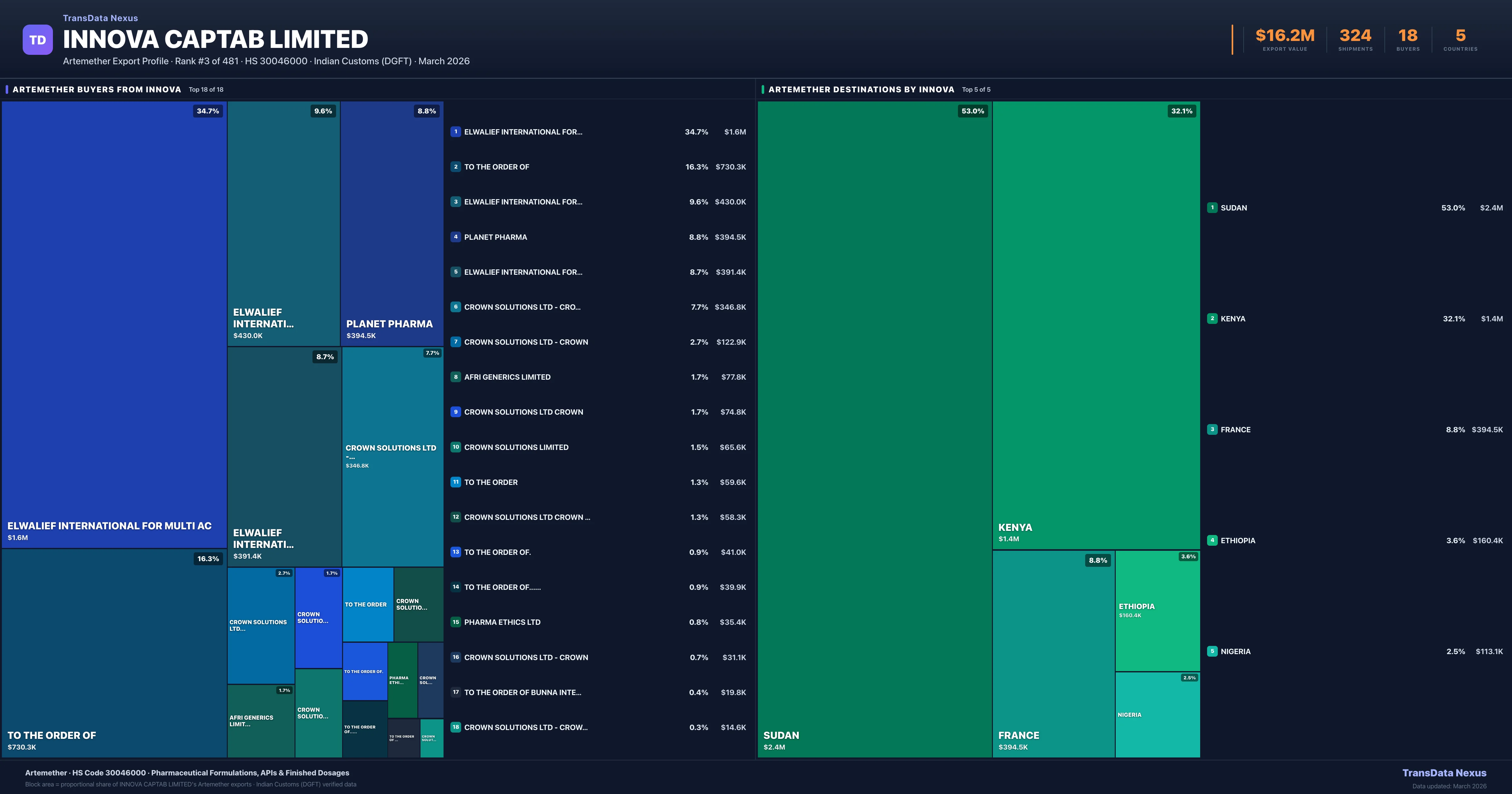 Innova Captab Limited — Artemether Export Profile: Buyers & Destinations