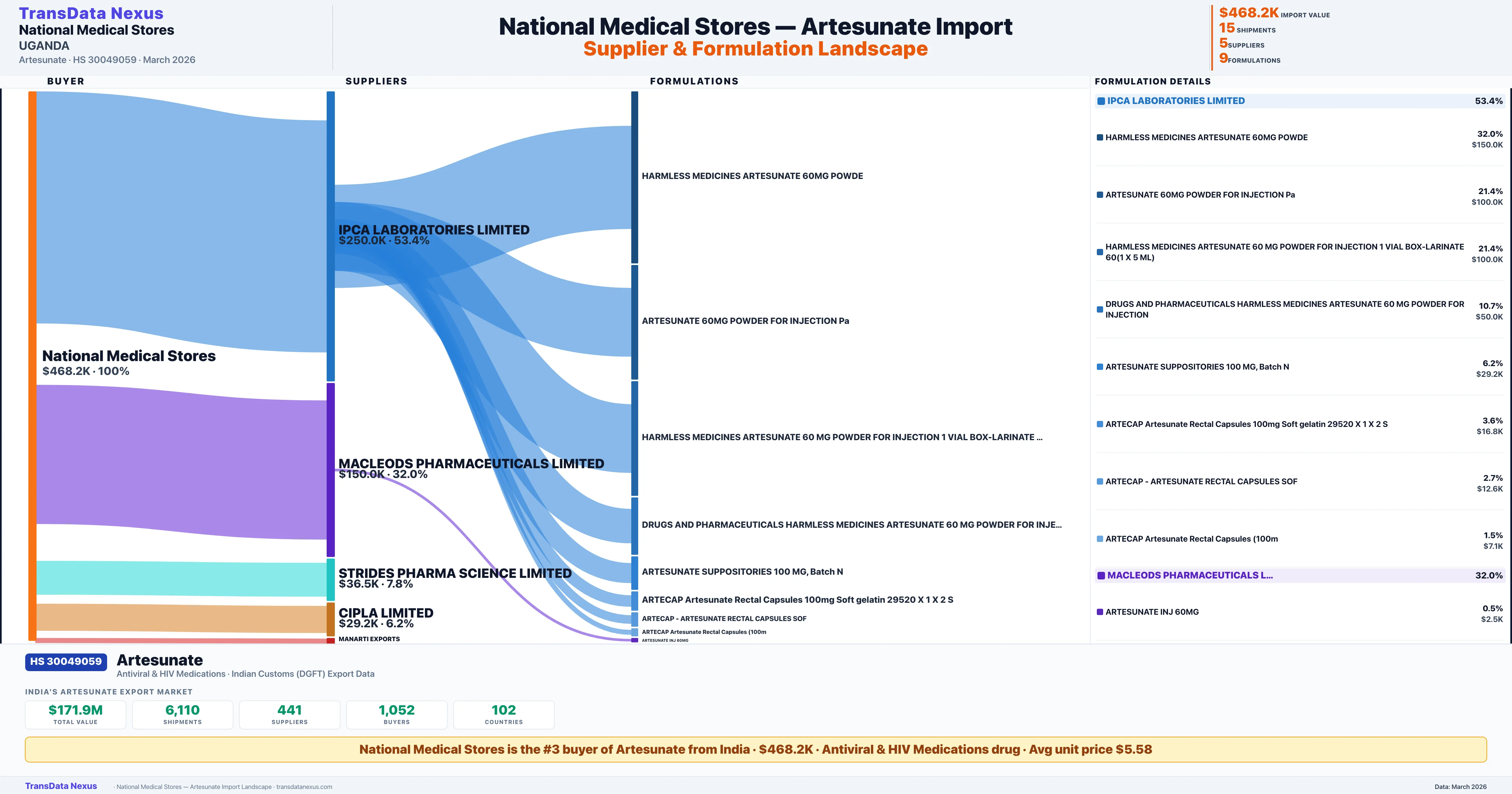 NATIONAL MEDICAL STORES β Artesunate Import Profile: Suppliers, Formulations & Sources
