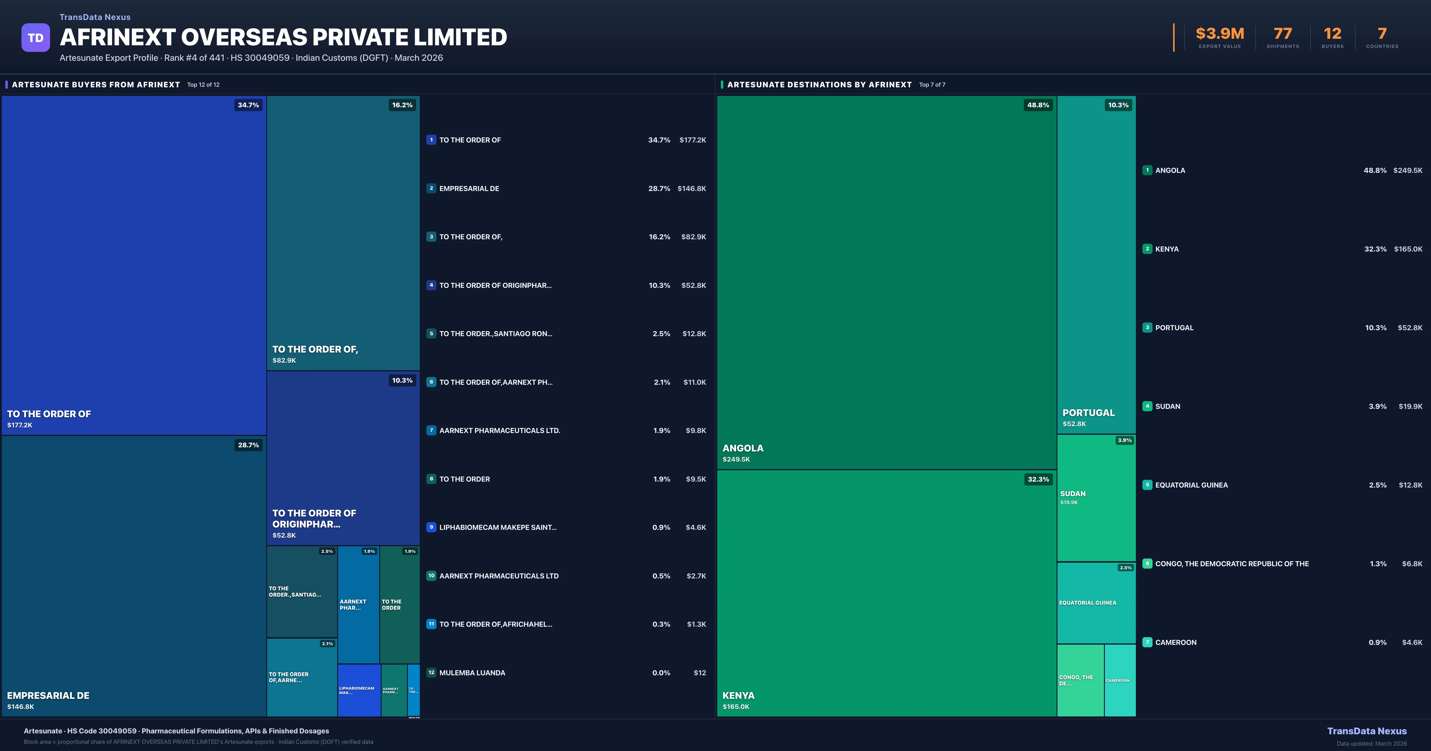Afrinext Overseas Private Limited — Artesunate Export Profile: Buyers & Destinations