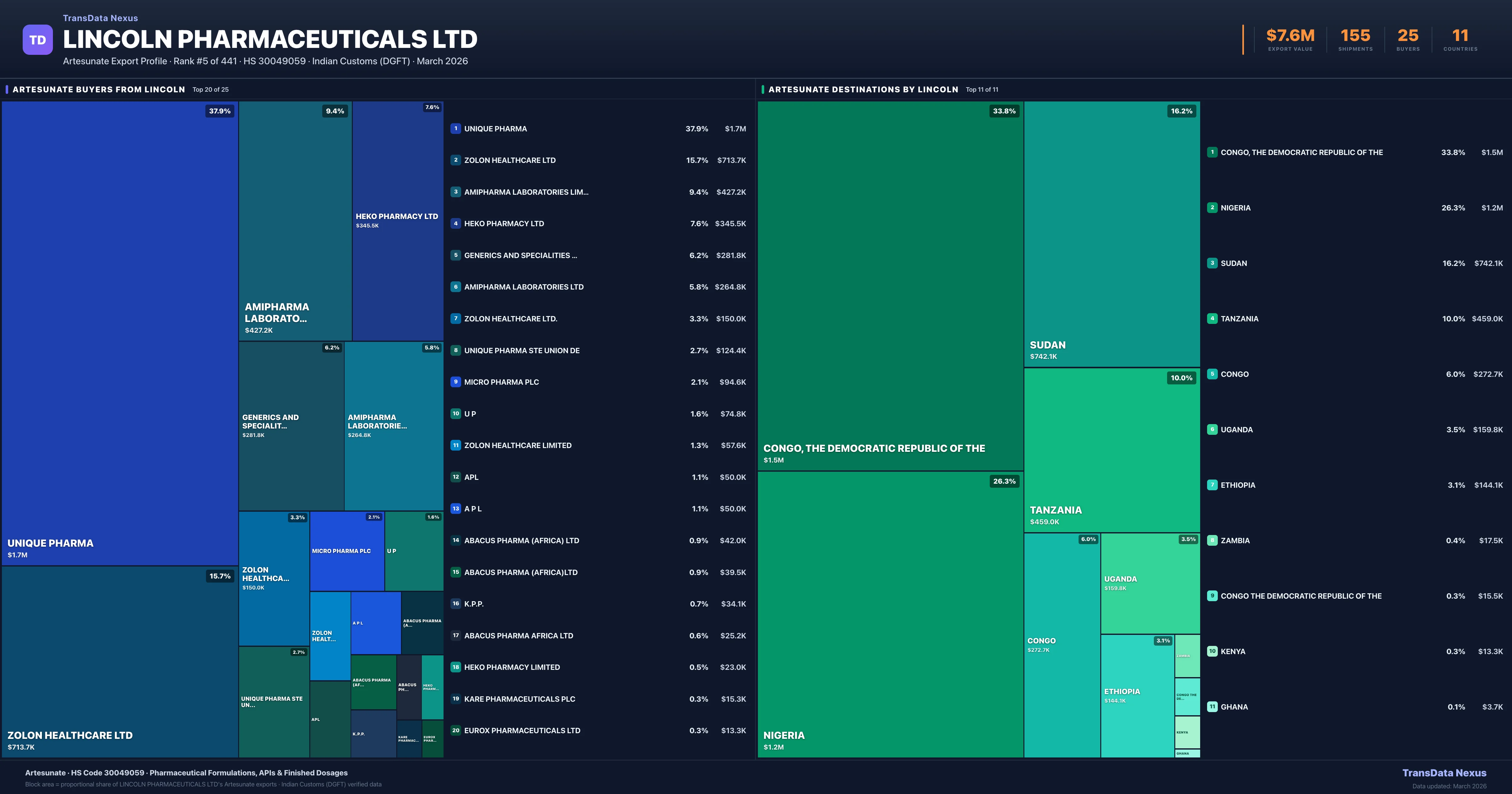 Lincoln Pharmaceuticals Ltd — Artesunate Export Profile: Buyers & Destinations