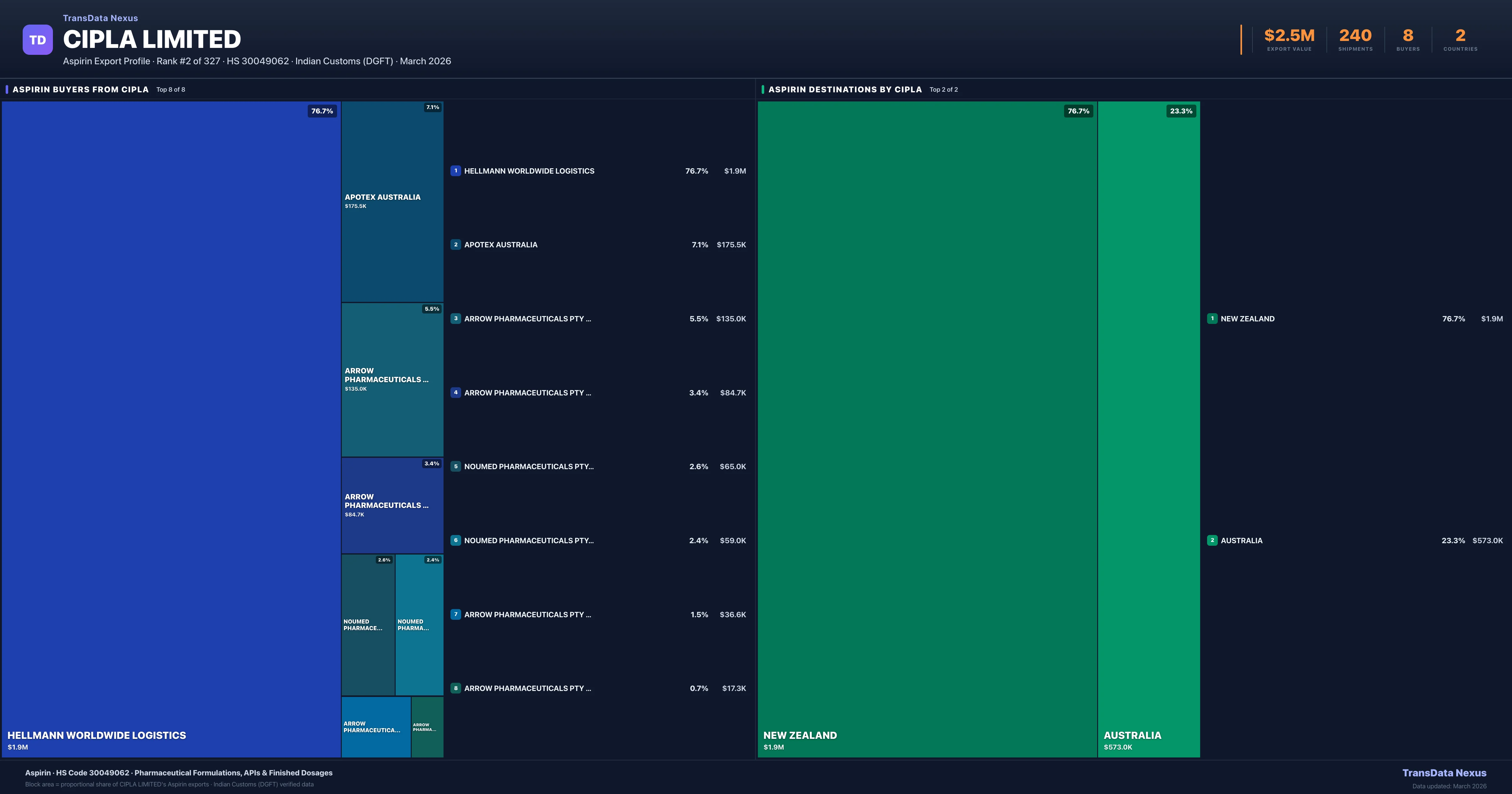 Cipla Limited — Aspirin Export Profile: Buyers & Destinations