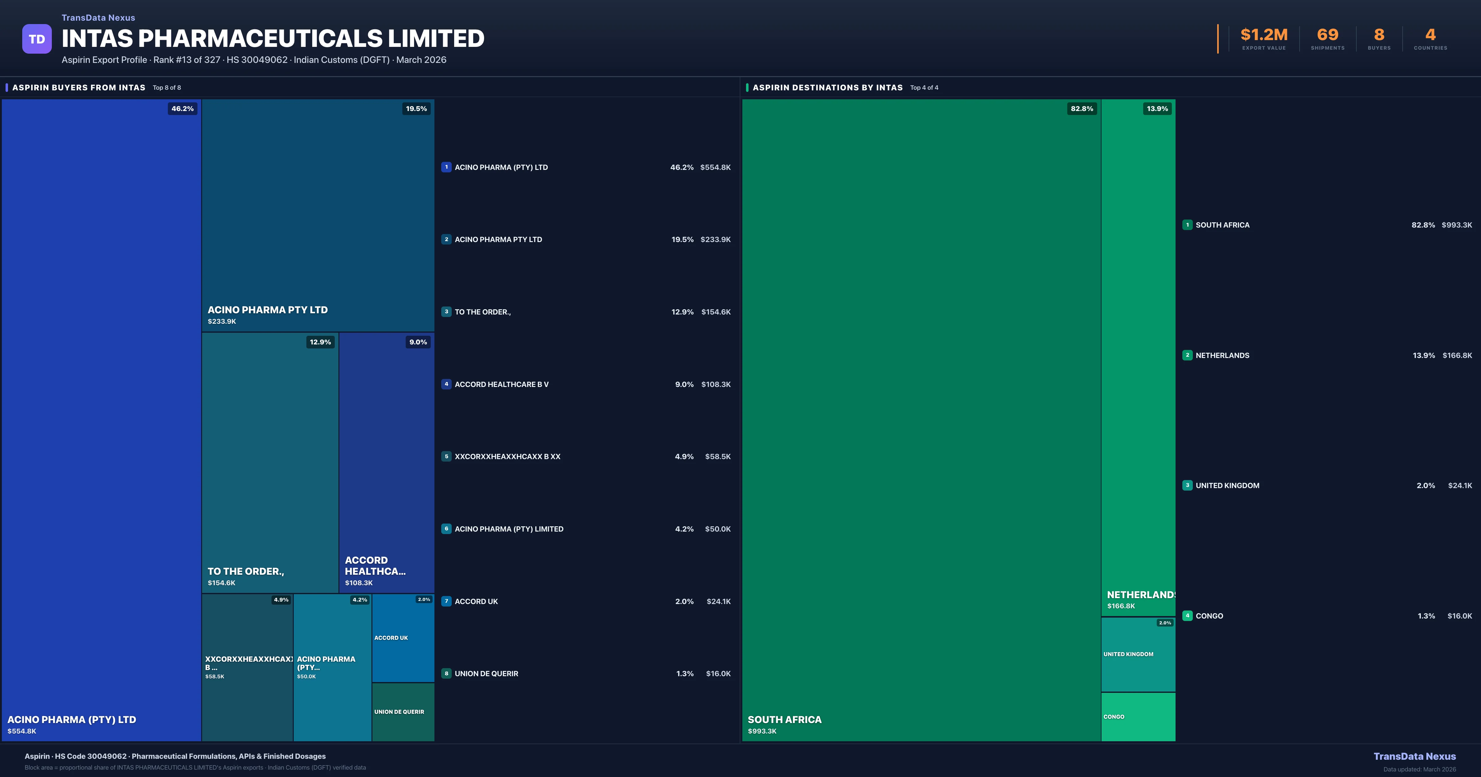 Intas Pharmaceuticals Limited — Aspirin Export Profile: Buyers & Destinations