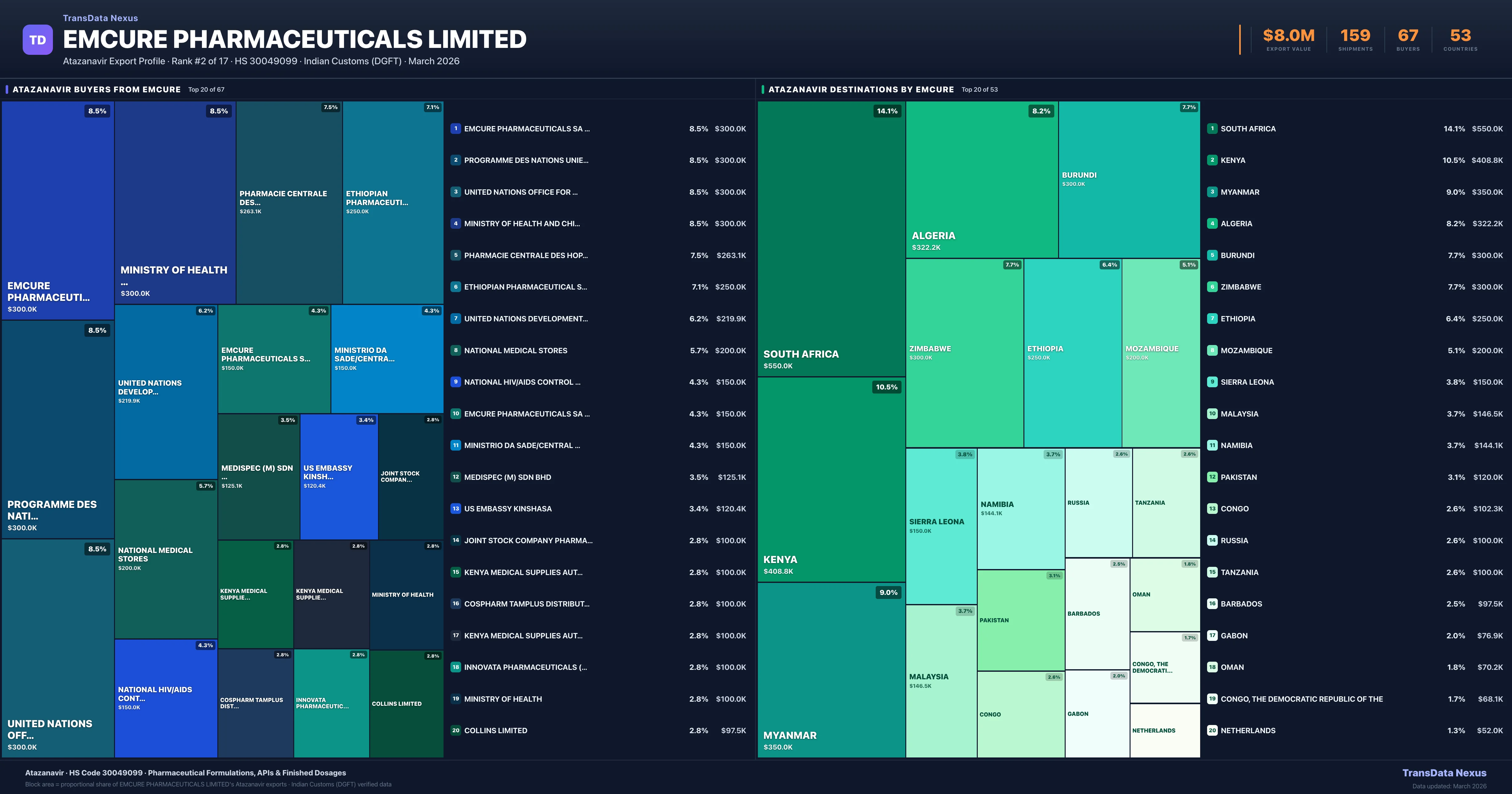 Emcure Pharmaceuticals Limited — Atazanavir Export Profile: Buyers & Destinations