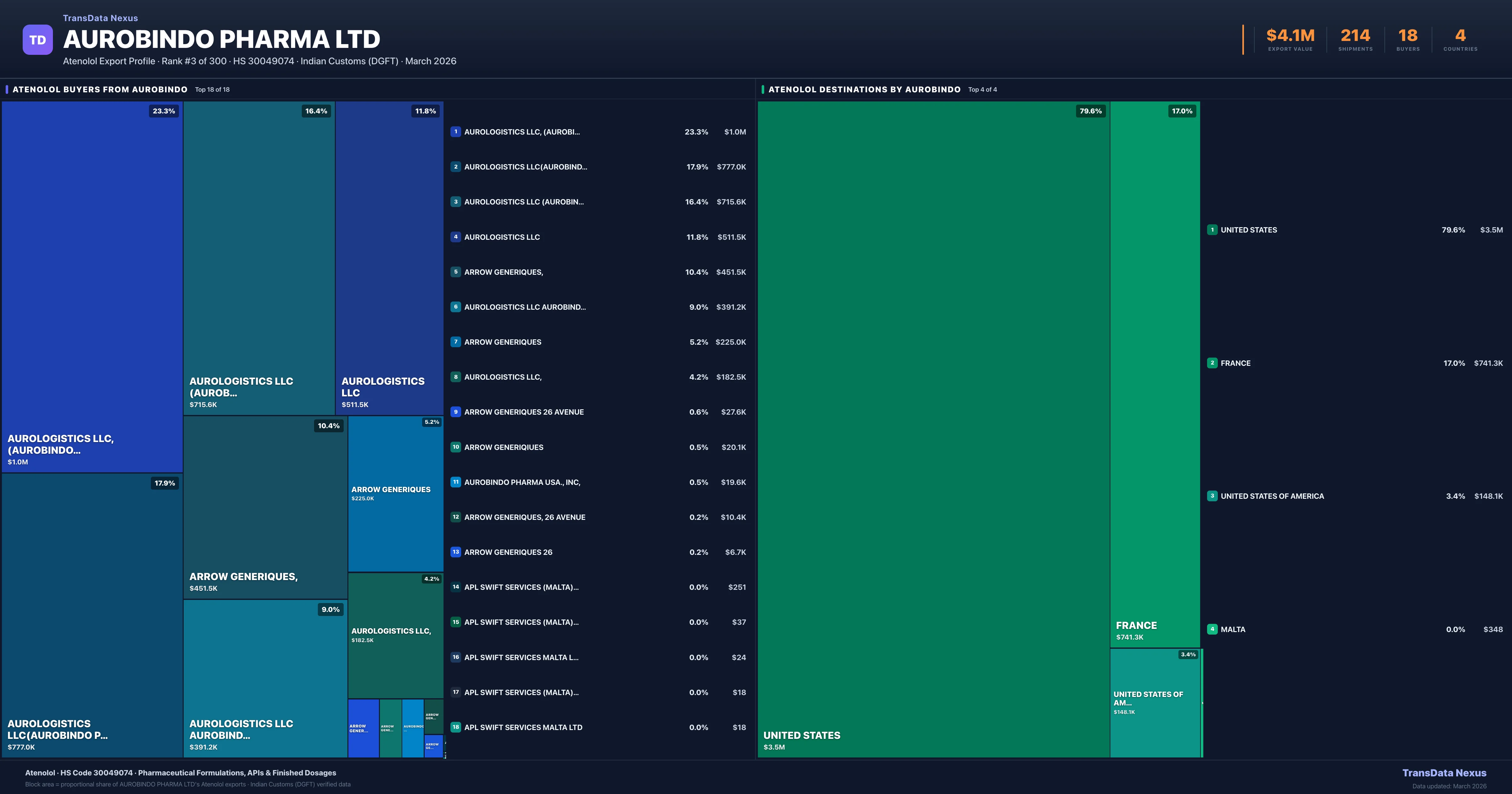 Aurobindo Pharma Ltd — Atenolol Export Profile: Buyers & Destinations