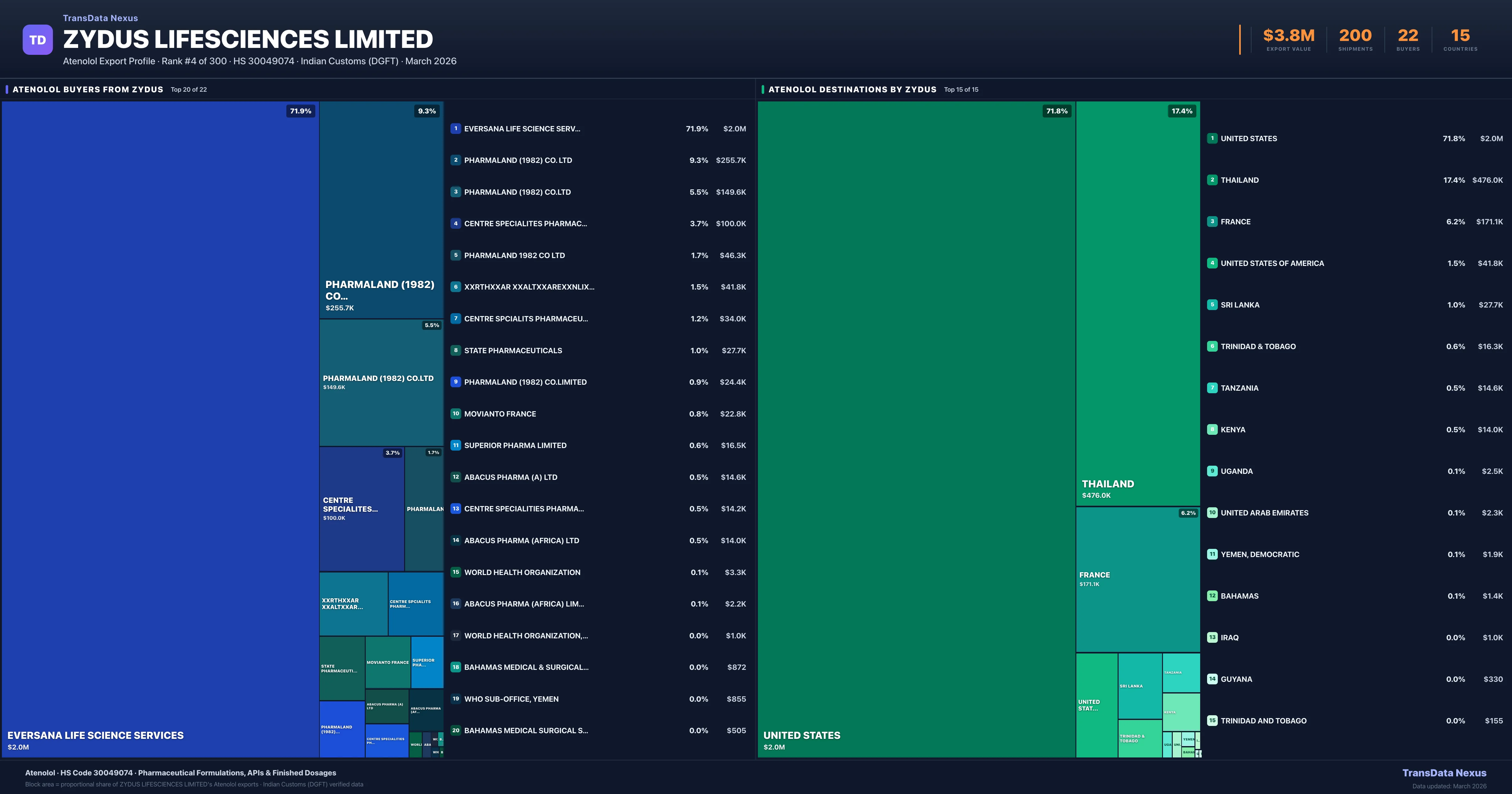 Zydus Lifesciences Limited β Atenolol Export Profile: Buyers & Destinations