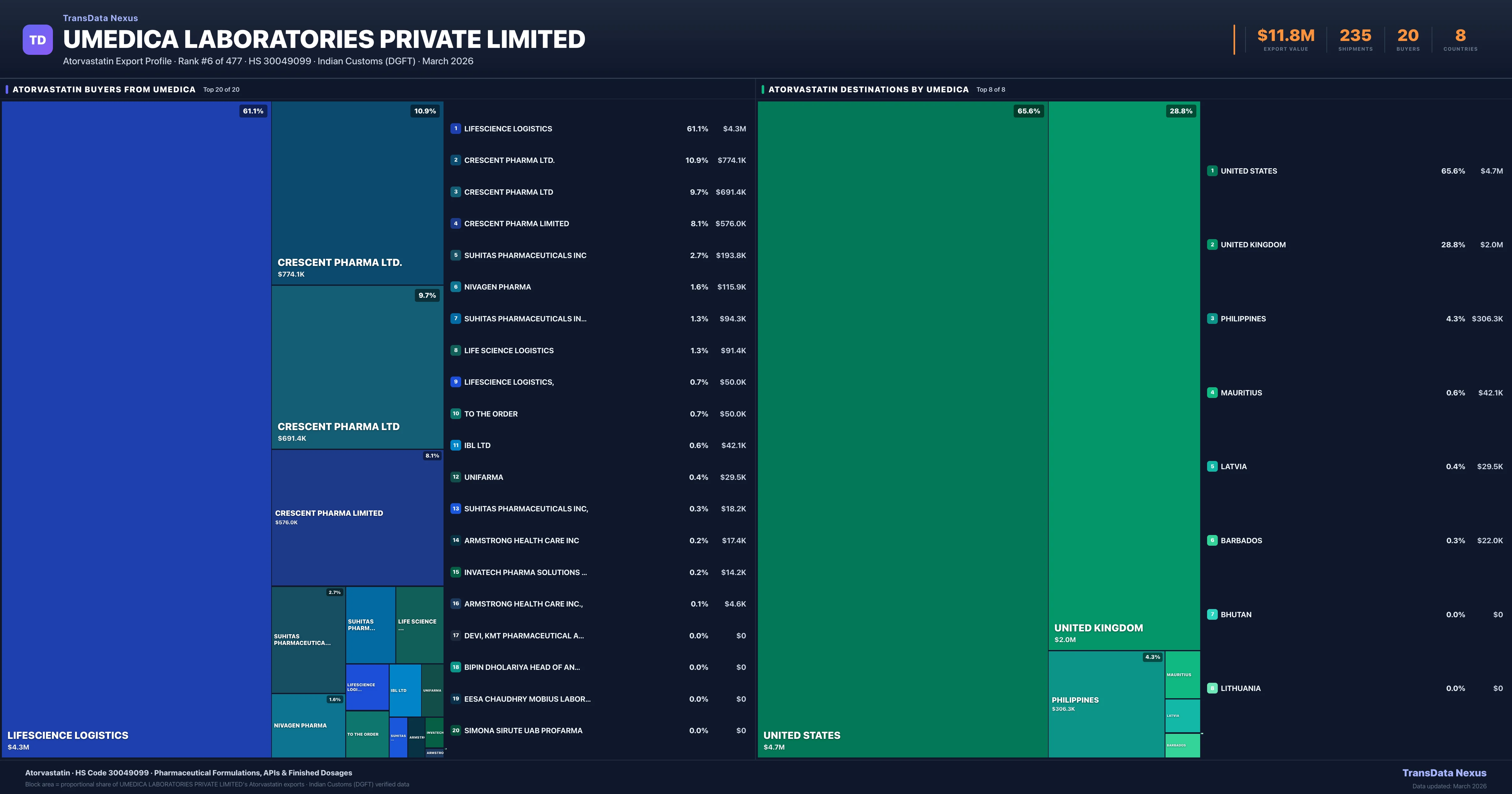 Umedica Laboratories Private Limited — Atorvastatin Export Profile: Buyers & Destinations