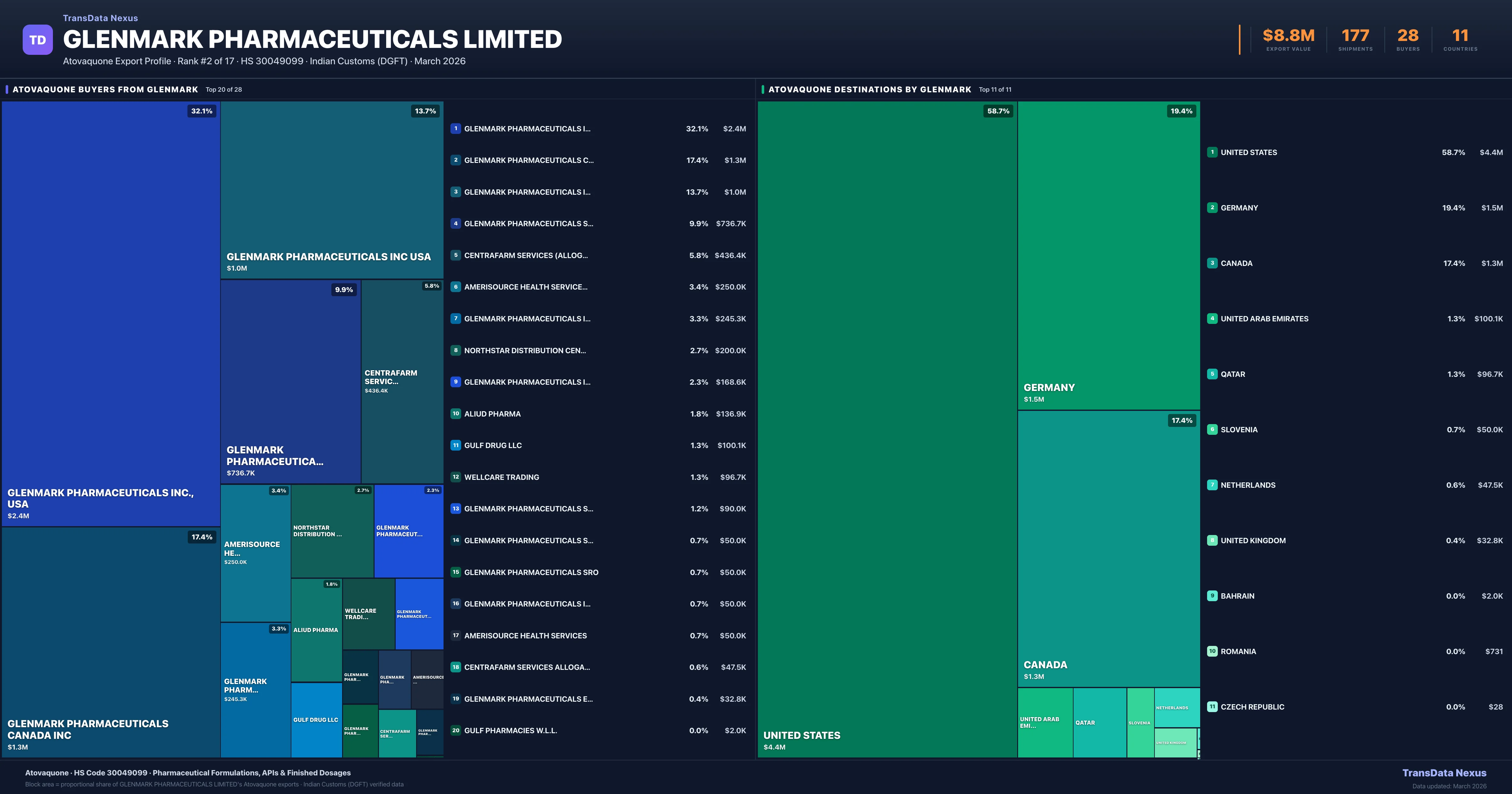 Glenmark Pharmaceuticals Limited — Atovaquone Export Profile: Buyers & Destinations