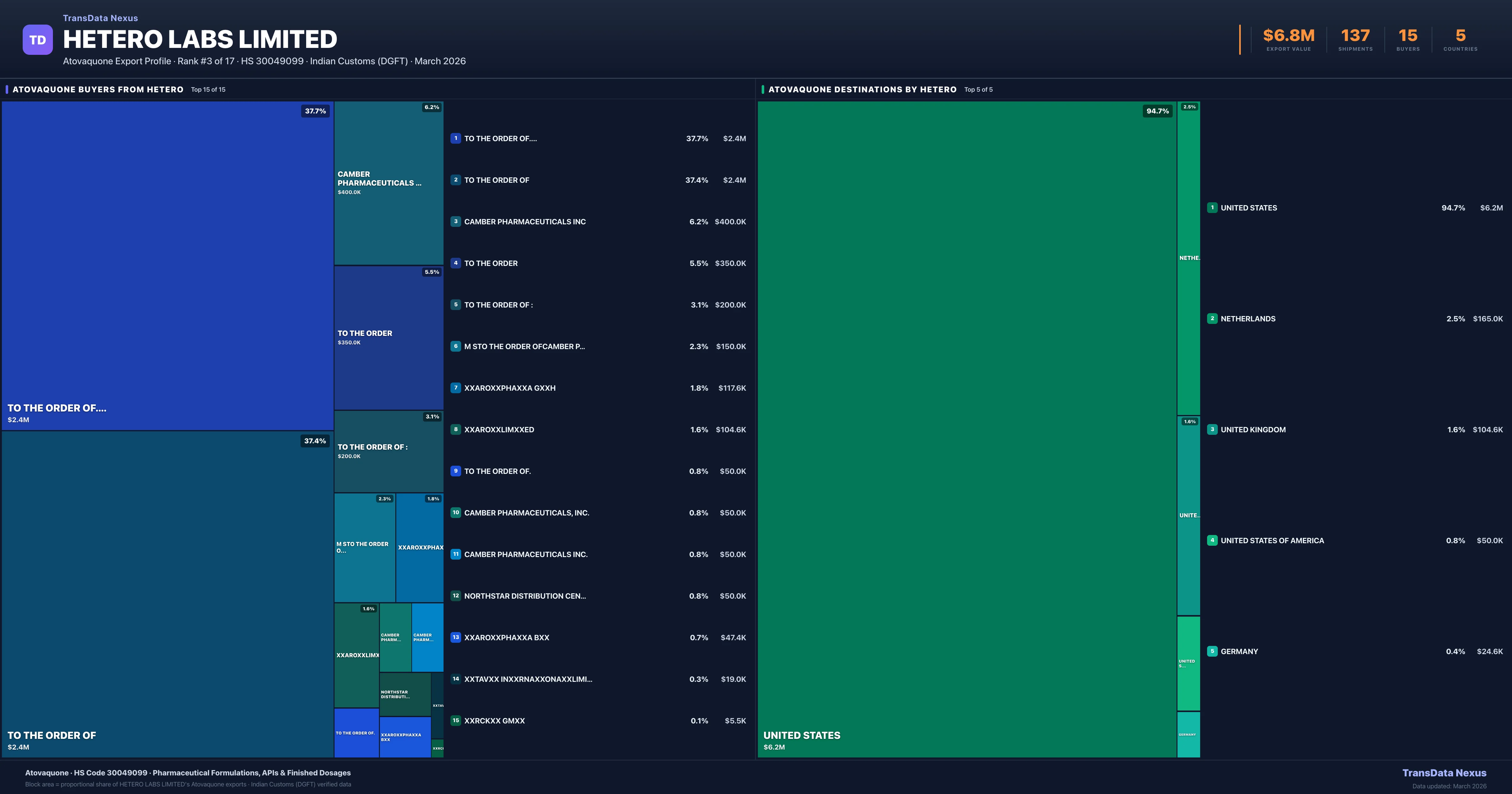 Hetero Labs Limited — Atovaquone Export Profile: Buyers & Destinations