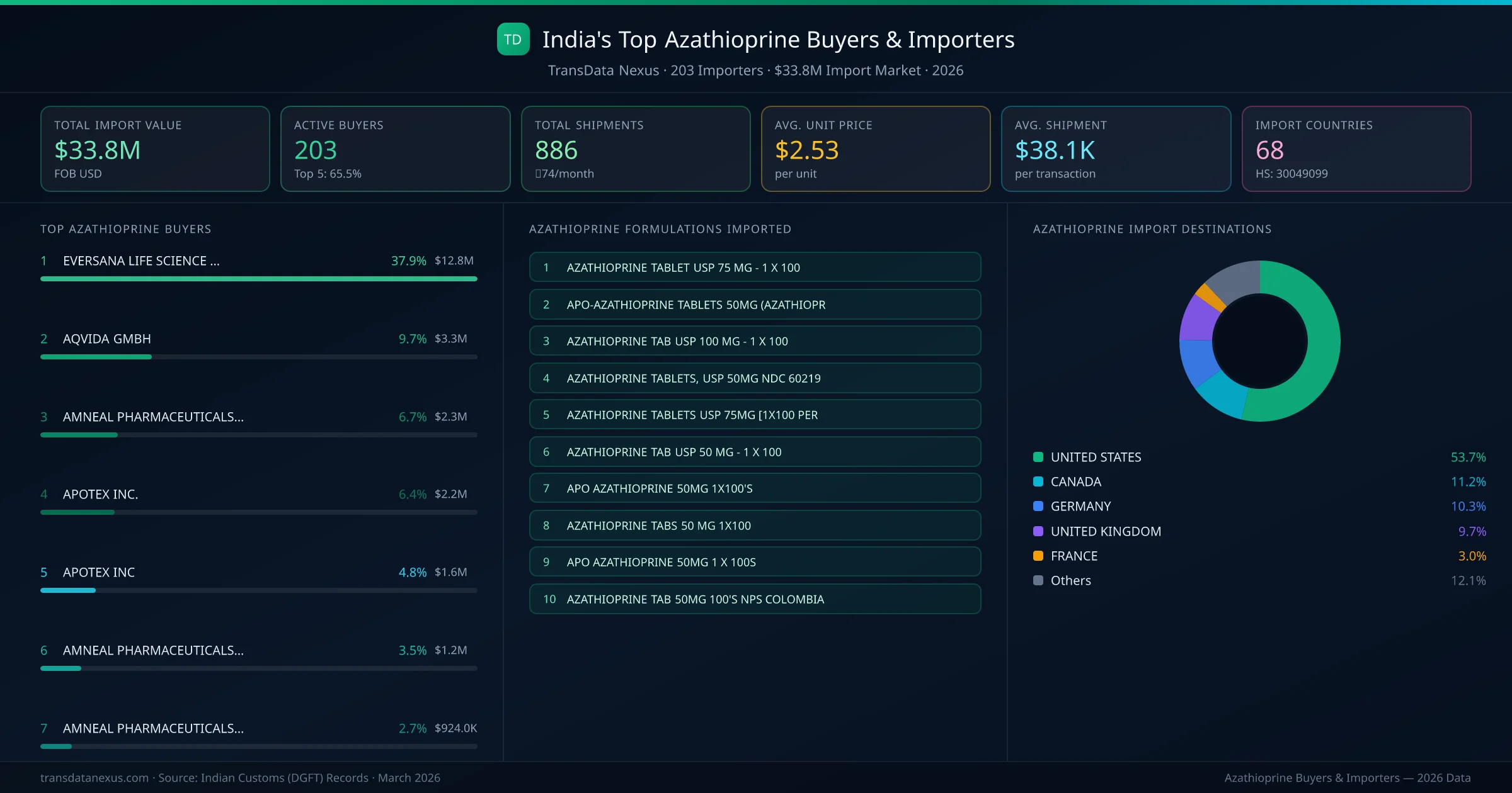 Who Buys Azathioprine from India — 203 Importers Behind a $33.8M Market