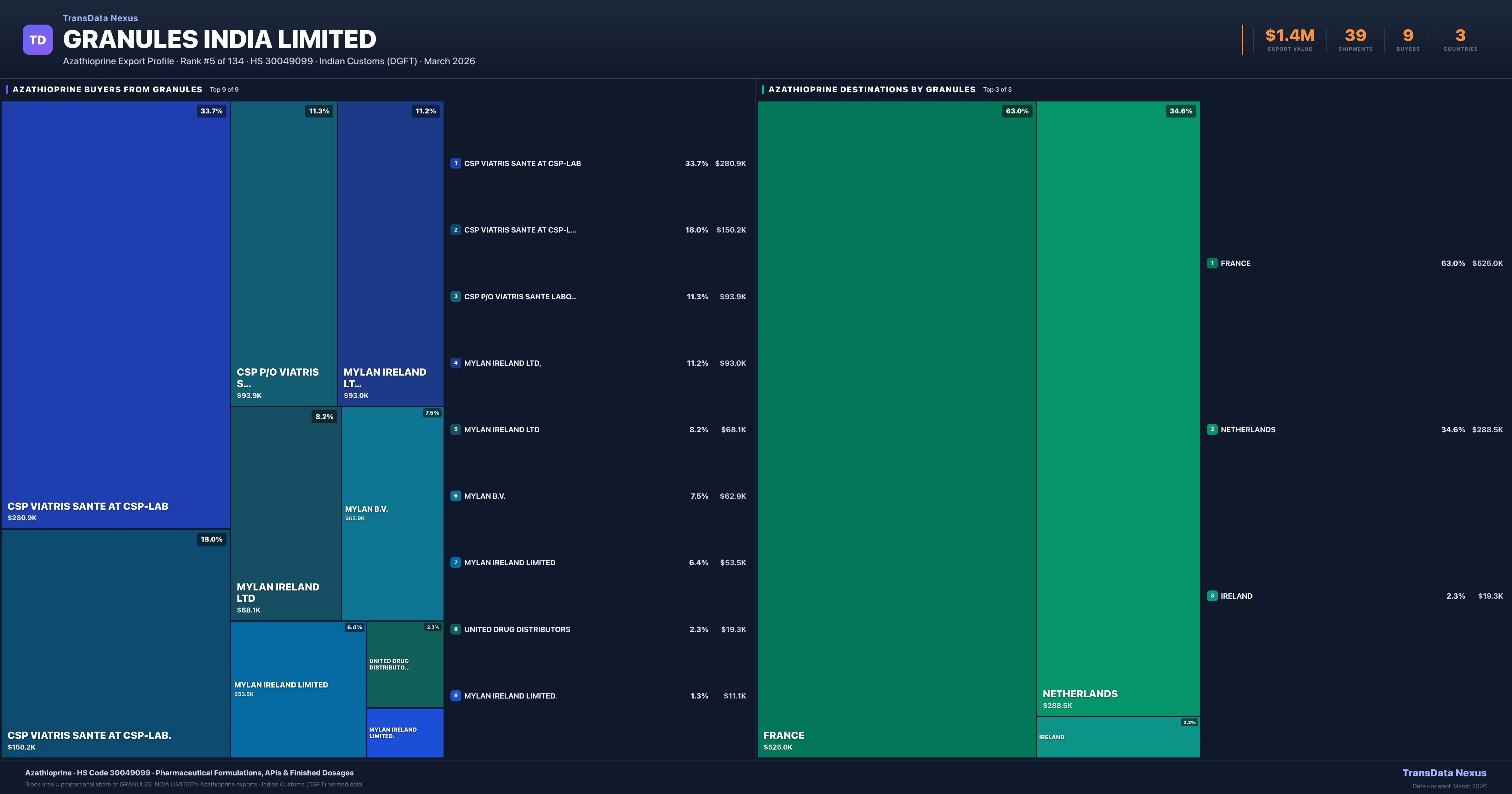 Granules India Limited — Azathioprine Export Profile: Buyers & Destinations
