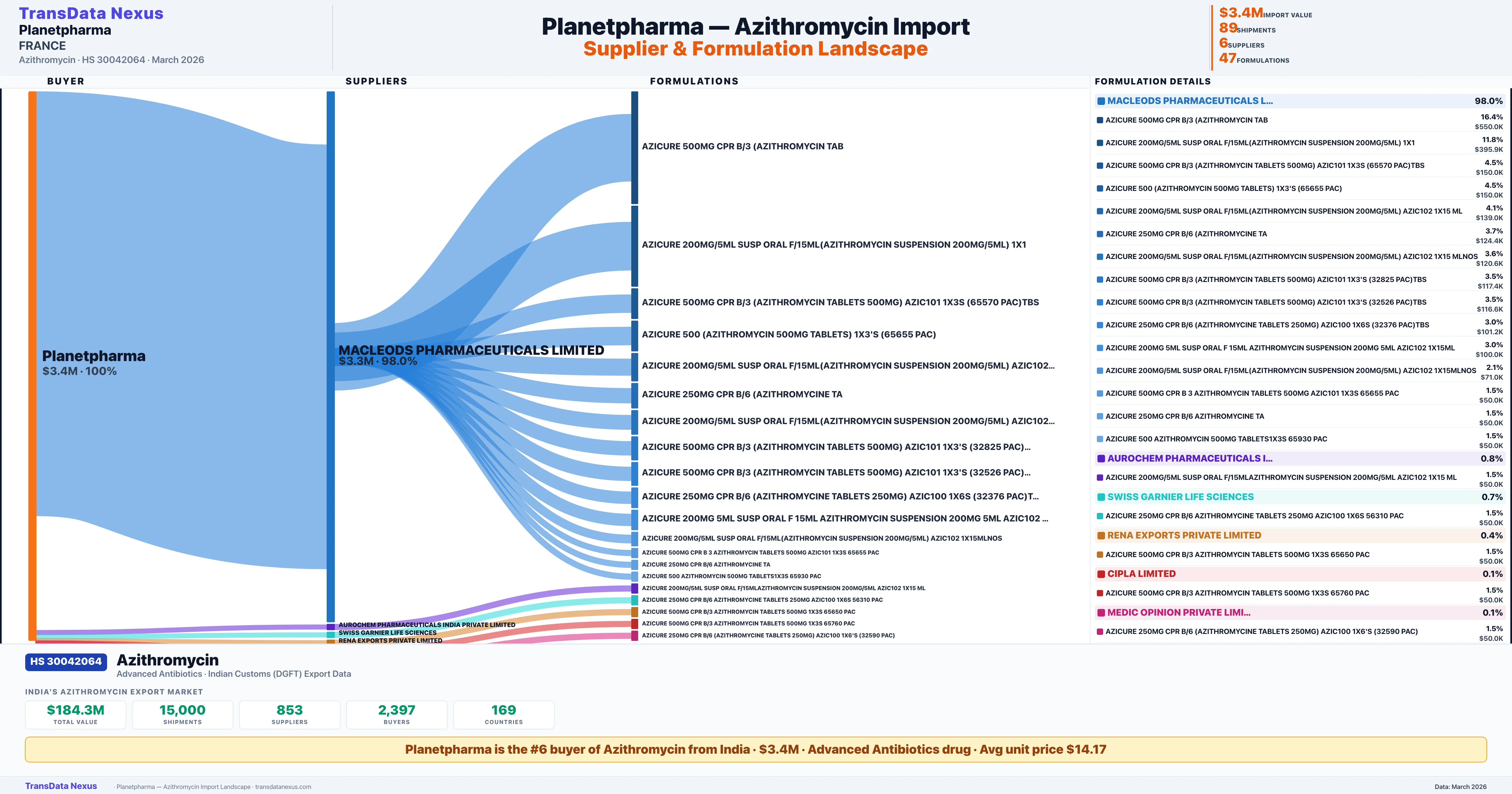 PLANETPHARMA — Azithromycin Import Profile: Suppliers, Formulations & Sources