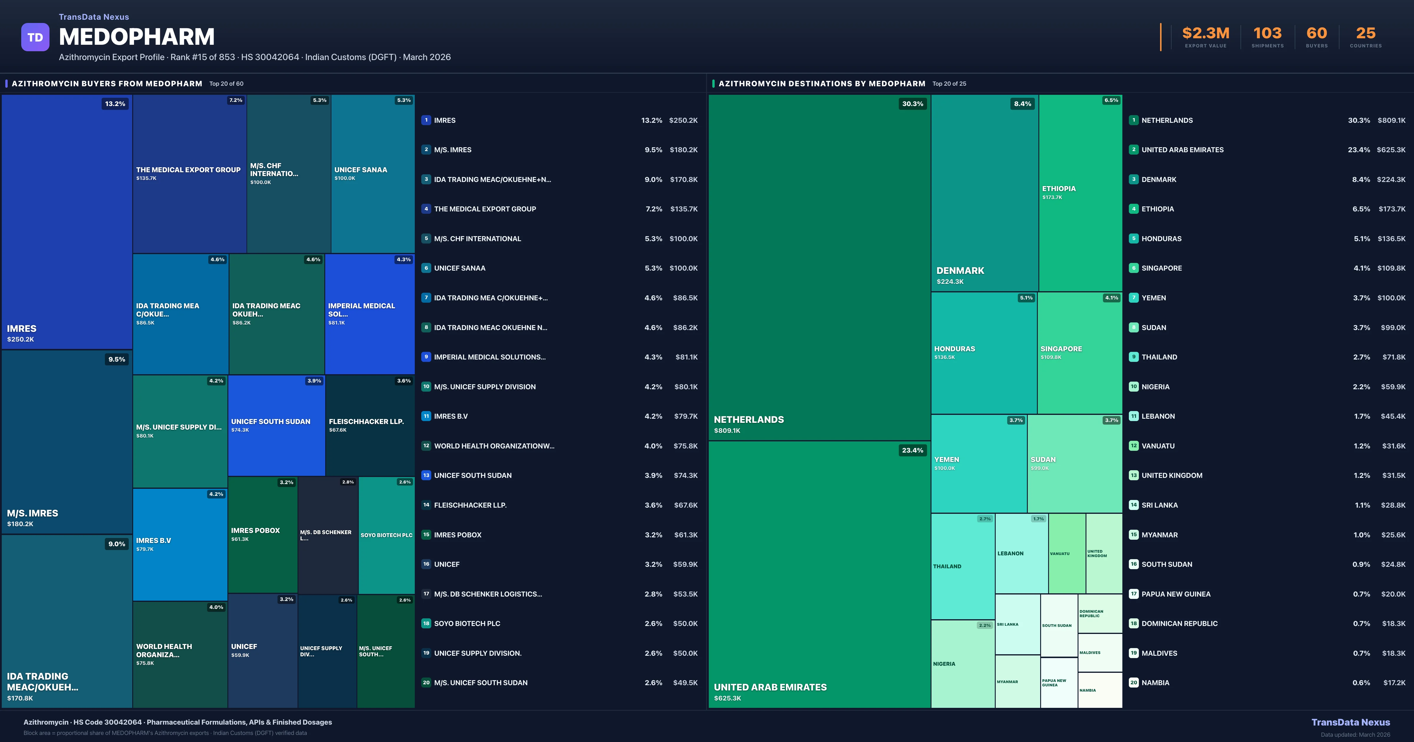 Medopharm — Azithromycin Export Profile: Buyers & Destinations