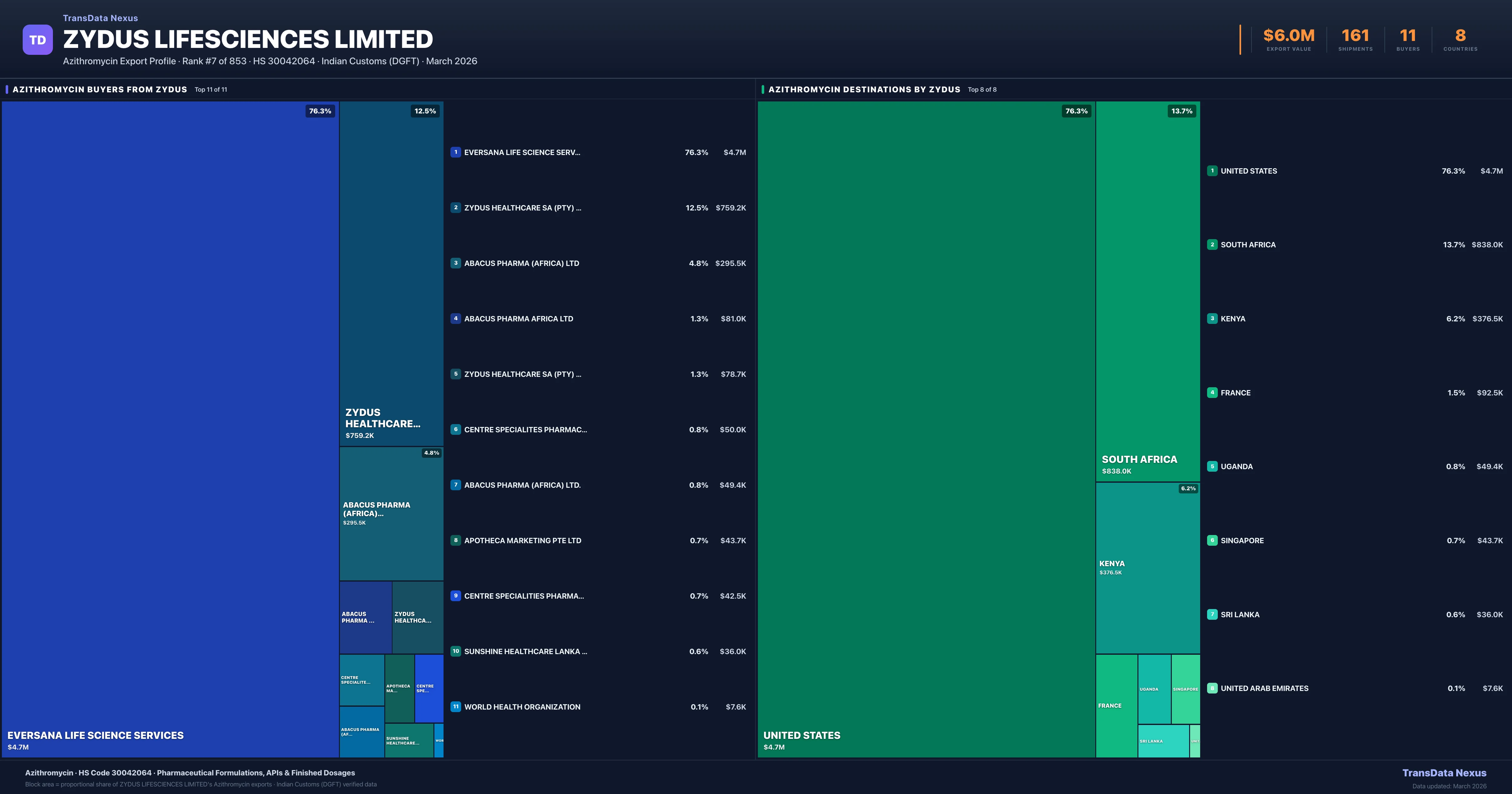 Zydus Lifesciences Limited — Azithromycin Export Profile: Buyers & Destinations