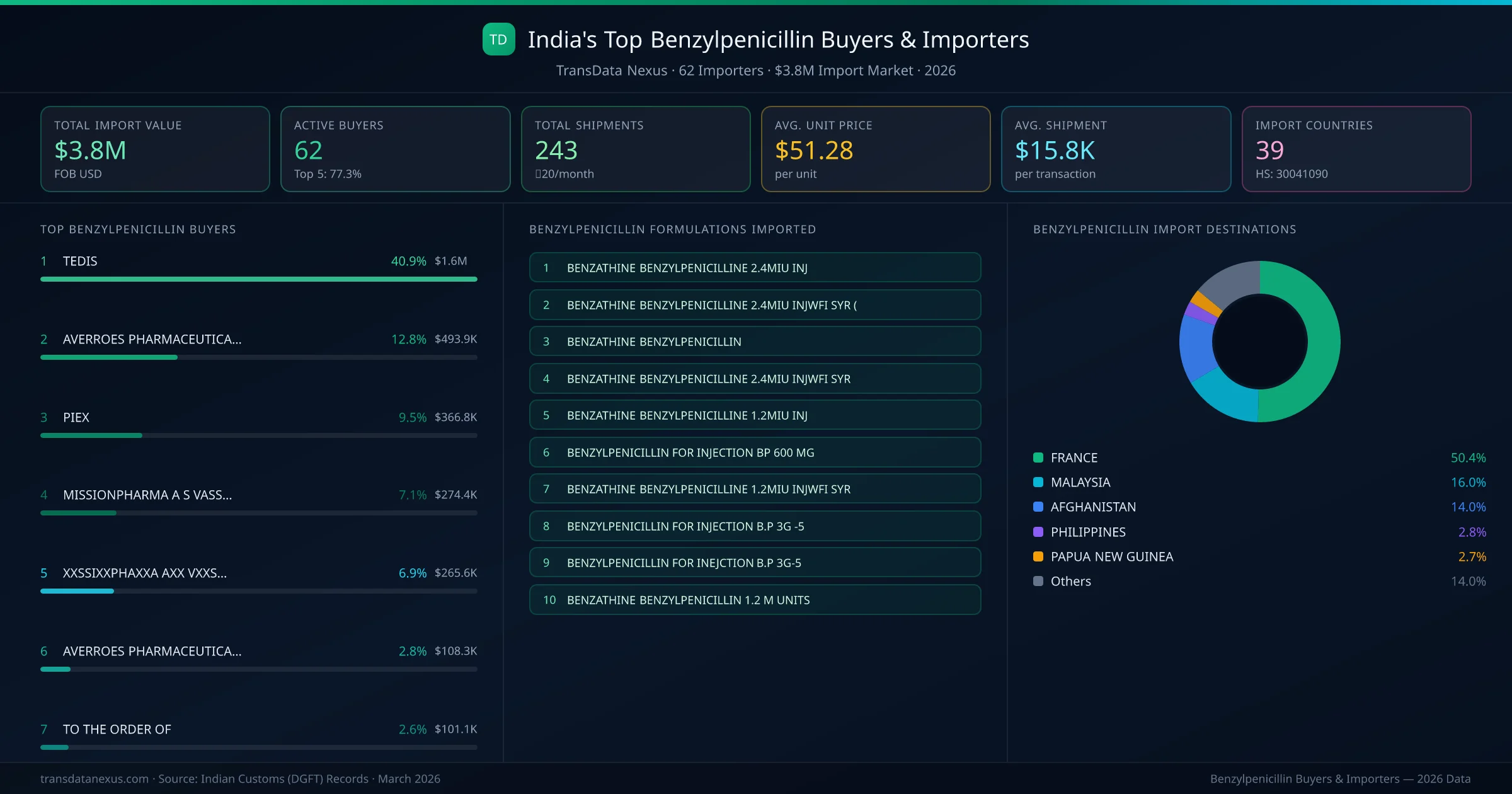 Who Buys Benzylpenicillin from India — 62 Importers Behind a $3.8M Market