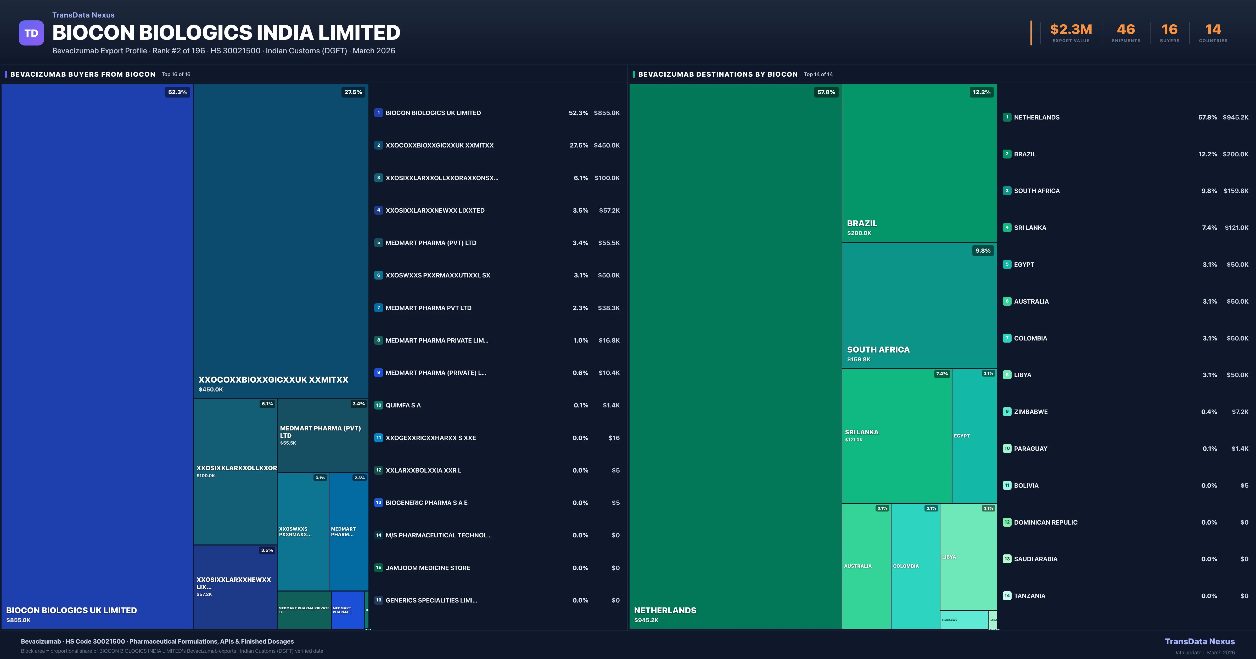Biocon Biologics India Limited — Bevacizumab Export Profile: Buyers & Destinations