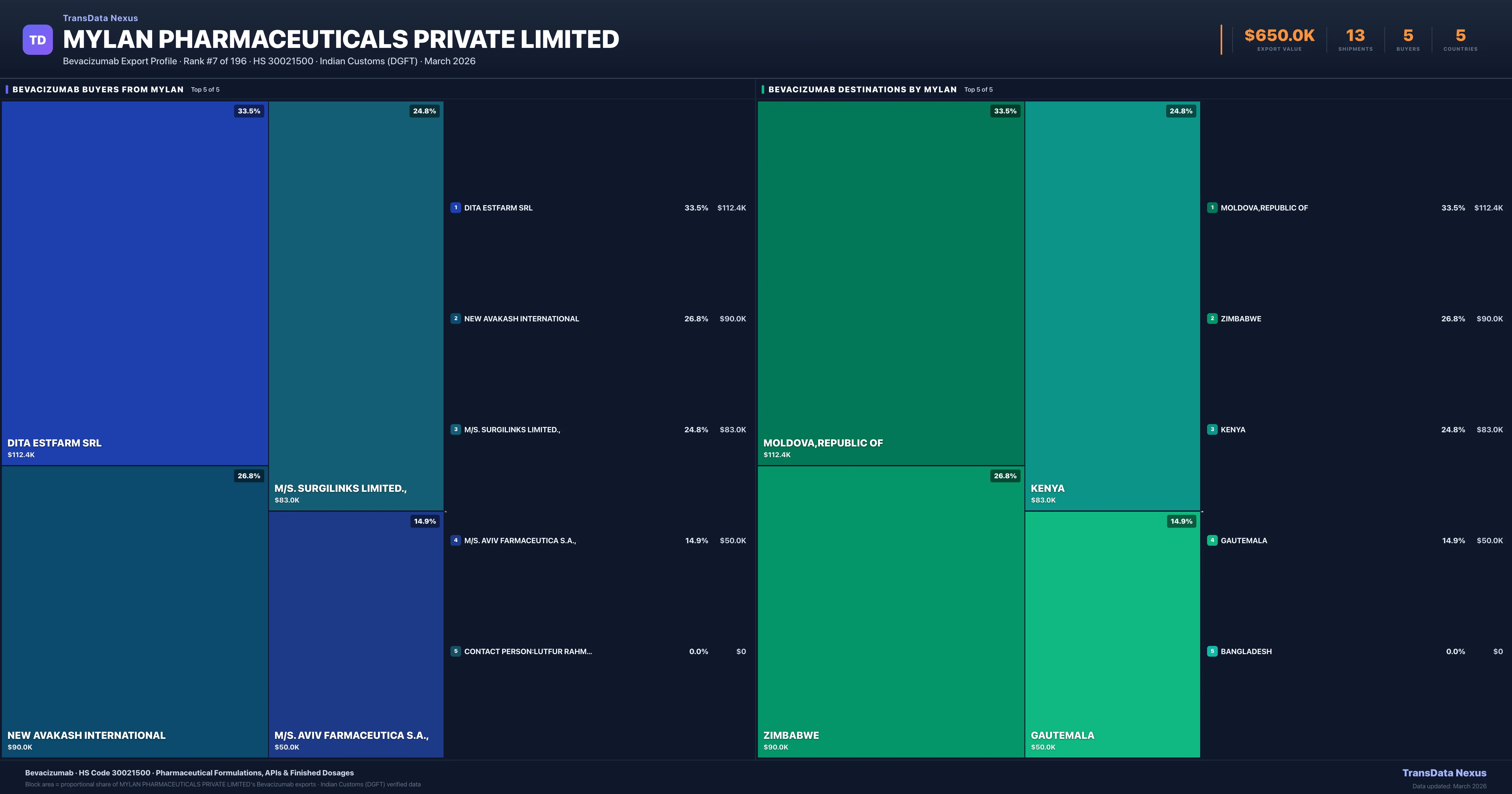 Mylan Pharmaceuticals Private Limited — Bevacizumab Export Profile: Buyers & Destinations