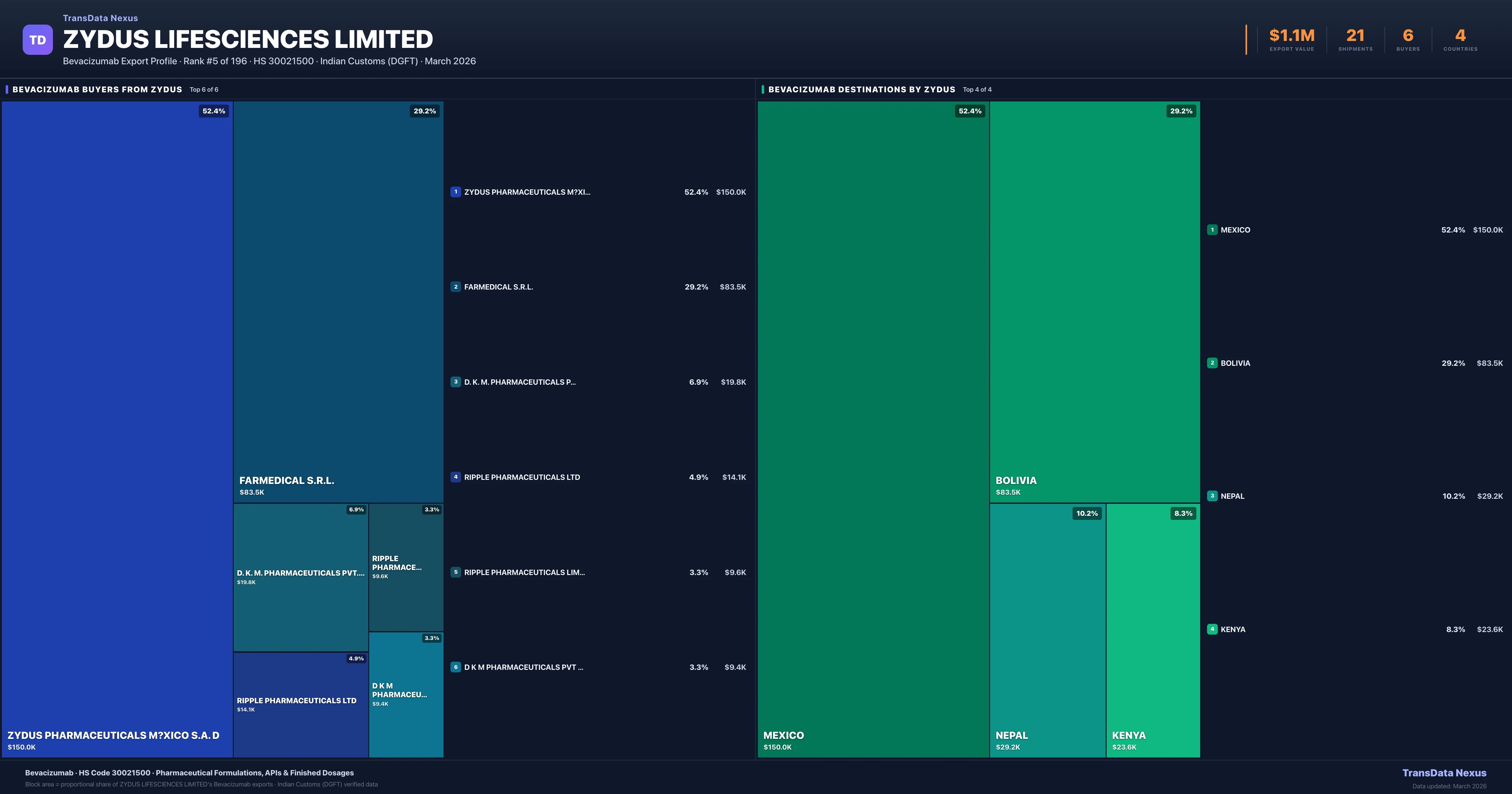 Zydus Lifesciences Limited — Bevacizumab Export Profile: Buyers & Destinations